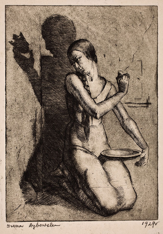 Irena Jasińska-Dybowska zilustrowała finał najpopularniejszej z wróżb tego czasu – lania z wosku. Grafika przedstawia klęczącą dziewczynę, która trzyma w dłoni niewielką, odlaną z wosku formę. Wynik przepowiedni jest doskonale widoczny w cieniu odbijającym się na ścianie – owa forma przypomina swym kształtem ukoronowaną głowę.