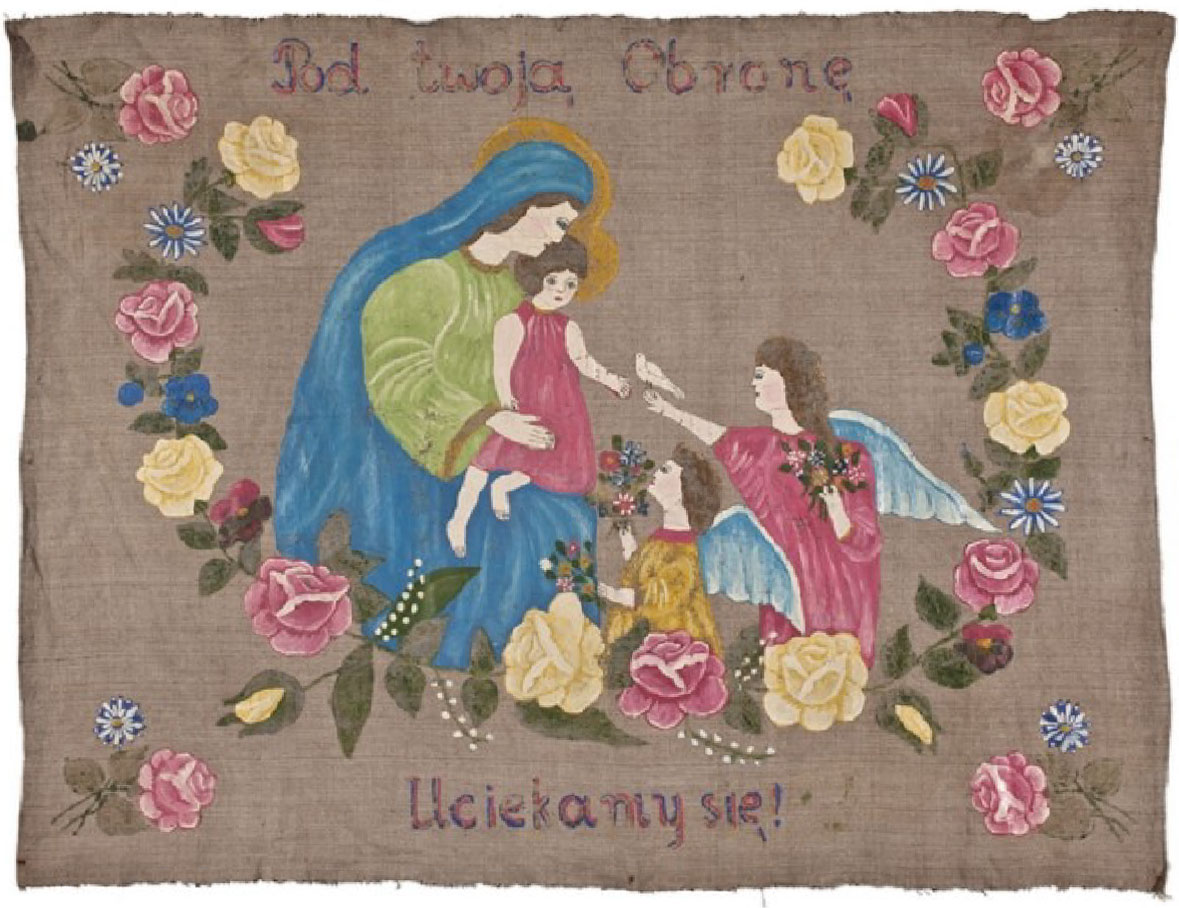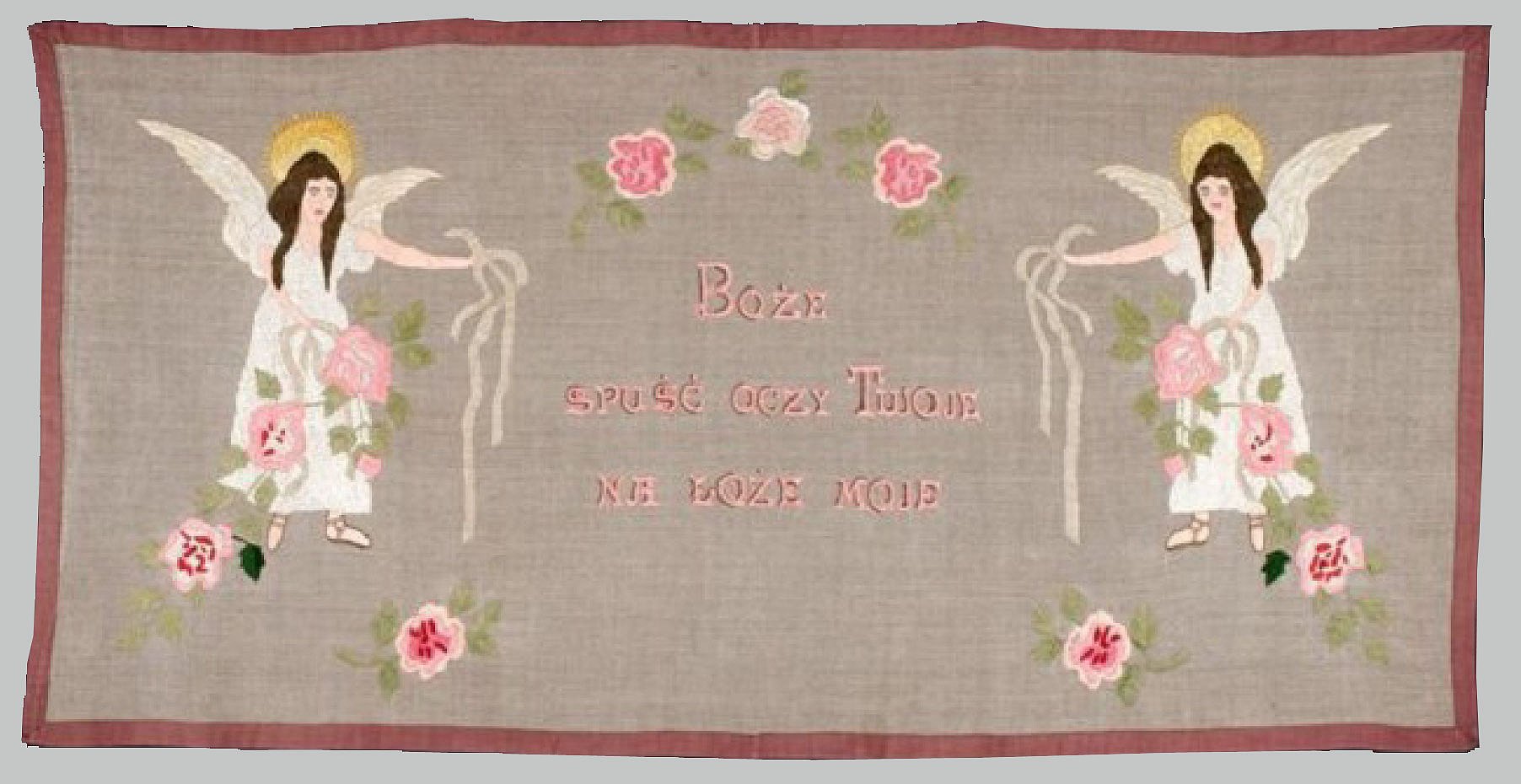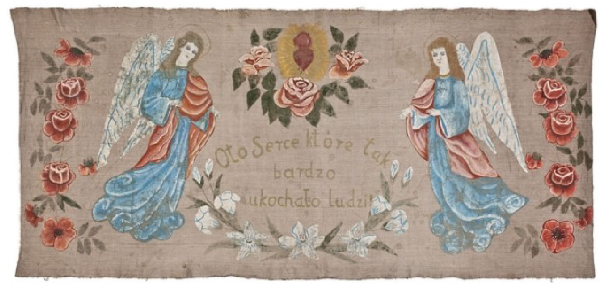 Anioły malarskie, rzeźbiarskie i graficzne, bohaterowie makatek, wycinanek i fotograficznych ekranów reprezentują zazwyczaj ten odłam twórczości, który określamy jako „sztukę dla ludu”. Trwają w bliskości Boga, a czasem są z nim tożsame. Najczęściej zdają się przebywać w niebie, a na ziemi tylko wśród tych, którzy są do niego przeznaczeni. Z ziemią łączą ich także liczne cudowne objawienia, głównie maryjne. Są bardziej materialne niż anioły folklorystyczne, bo do życia powołują je wizualne dziedziny twórczości. Trudno się jednak oprzeć wrażeniu, że – zawsze pomocne i gorliwe w pełnieniu swoich funkcji – grają role drugoplanowe. Tak dyskretne, że czasem niezauważalne.