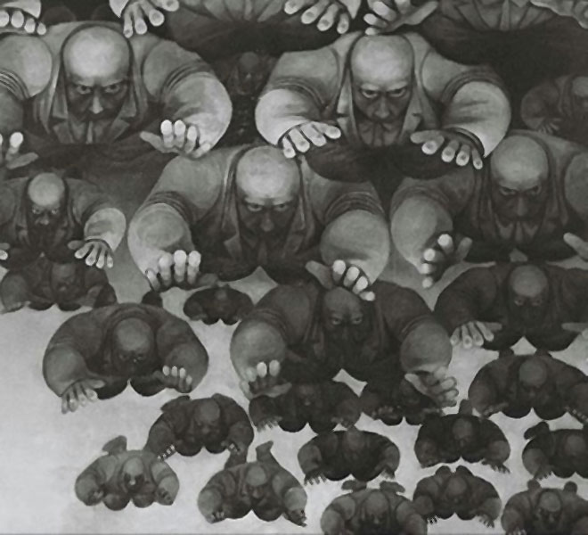 Najbardziej jednak zachwyciło mnie sklepienie kopuły północnej, ozdobione geometrycznymi biało-czarnymi wzorami. I to właśnie tam pierwszy raz zobaczyłam obraz Anny Szpakowskiej-Kujawskiej Atomy. W postaciach namalowanych przez artystkę można dopatrzeć się metafory ludzkiej bezsilności i rezygnacji. Ja jednak, fotografując tę pracę, widziałam coś zupełnie odwrotnego. Dla mnie ukazane na niej postaci to byli ludzie dążący wspólnie do jednego celu. Ludzie, w których jest moc i wola walki.