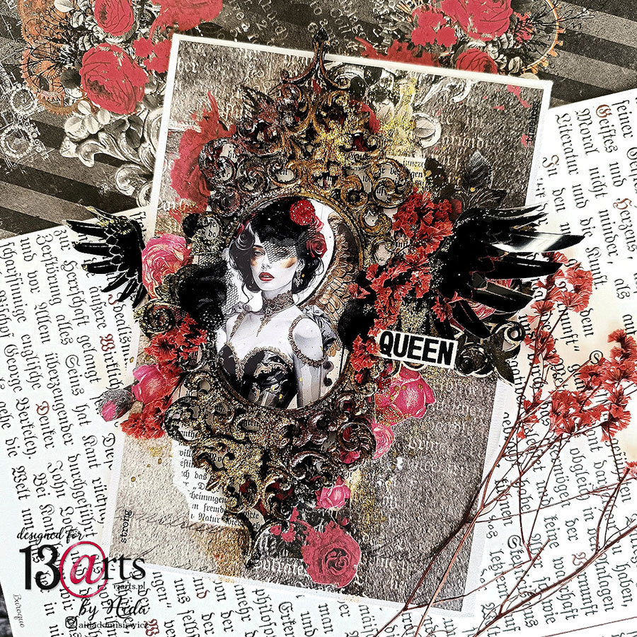 Tematem spotkania będzie kobieta baroku. W trakcie warsztatów stworzymy unikatową wielowarstwową pracę na panelu malarskim, do realizacji której posłużą profesjonalne produkty polskiej marki 13 arts – w skład zestawu wejdą ozdobne papiery i farby oraz inne dodatki, m.in. papiery z kolekcji „Victoriana”, stylizowany odlew z żywicy, suszone gałązki i kryształki. Wszystkie materiały dostępne będą na miejscu.
