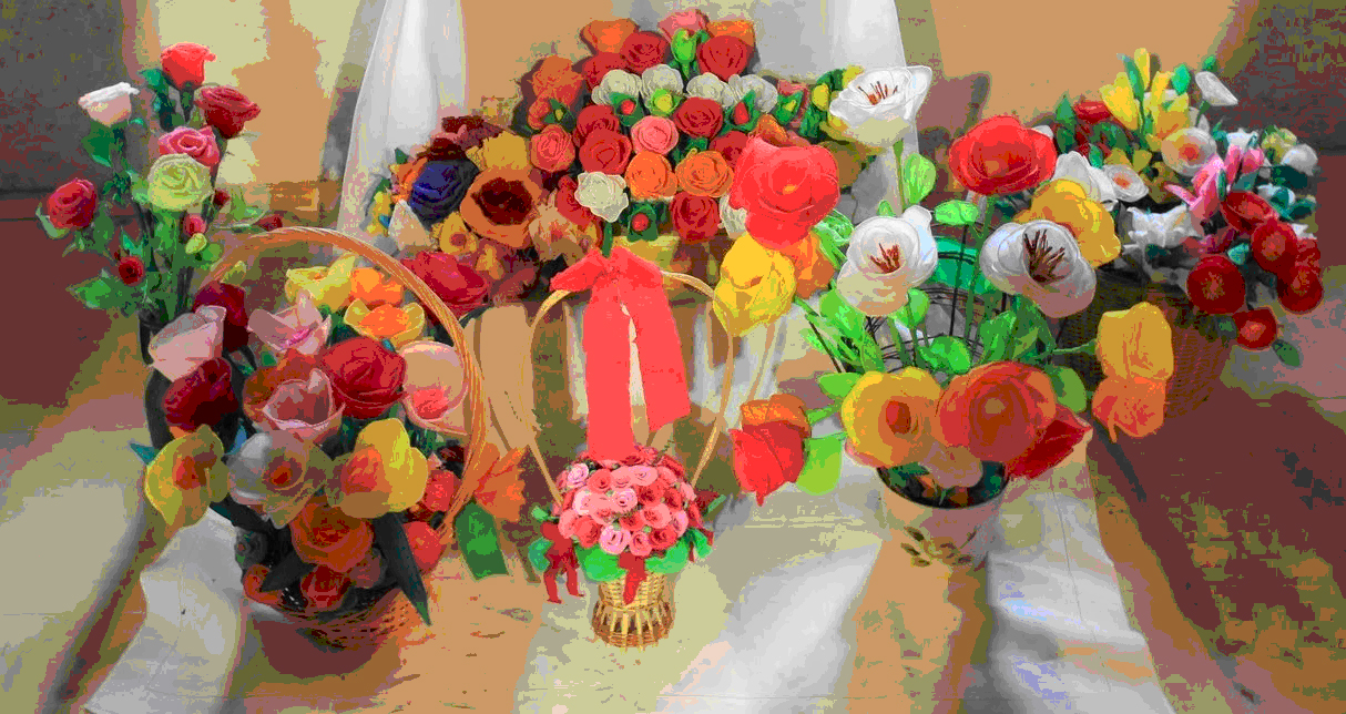 Na ekspozycji zaprezentowane będą kolorowe „pająki”, bibułowe kwiaty, bukiety, girlandy, pisanki zdobione techniką batikową, rytowniczą oraz aplikacyjną, tradycyjne palmy plecione z suszonych, barwionych kwiatów i traw, gliniane baranki, drewniane ptaszki oraz wiele innych świątecznych dekoracji.