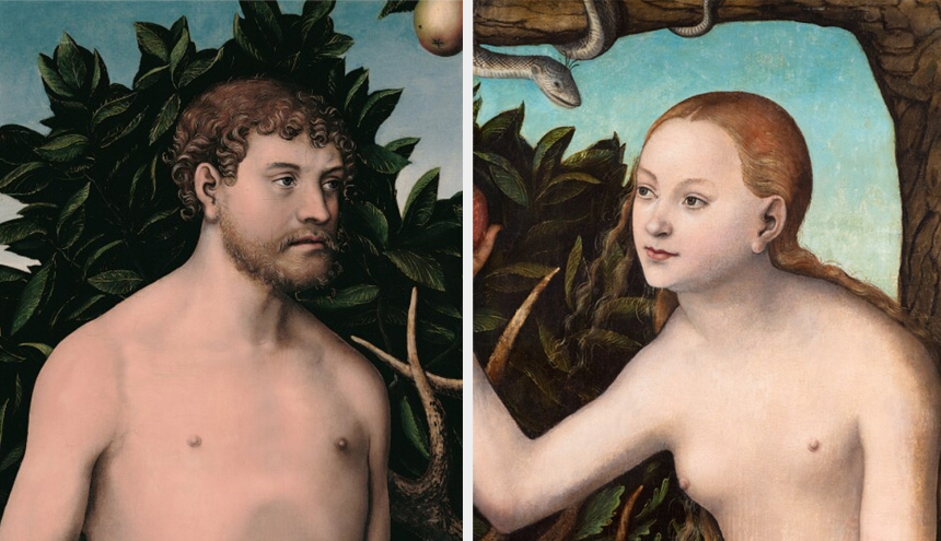 I takich właśnie – gotowych w imię miłości na wszystko, jakby wprost wyjętych z piosenki Hanki Ordonówny – namalowano ich w pracowni Lucasa Cranacha st. na kilka stuleci przed premierą tego przywołanego przeze mnie przed chwilą międzywojennego szlagieru, bo już około 1531 roku. Adam i Ewa, bo o nich tutaj mowa, ufnie wpatrzeni w siebie, już wybrali – skaczą, zdając się mówić: „Jeżeli spadać w przepaść, to tylko razem, tańcząc argentyńskie tango”.