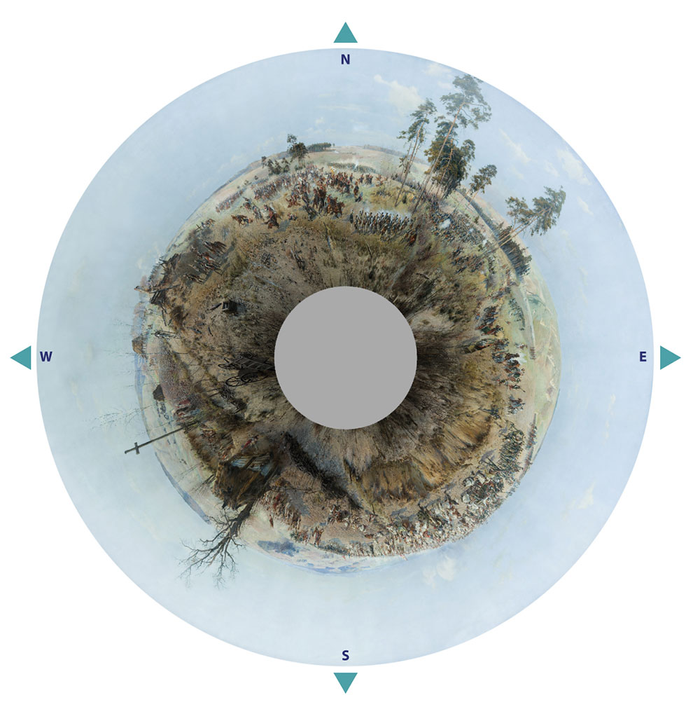 Uważni czytelnicy niniejszego cyklu z pewnością zauważyli, że przy lokalizacji opisywanych detali Panoramy Racławickiej posługuję się stronami świata. Używanie określeń „prawo” i „lewo” nie ma większego sensu w przypadku malowidła pozbawionego widocznych krawędzi i ram, malowidła, które nas otacza i którego zadaniem jest przeniesienie odbiorcy w iluzję świata realnego.