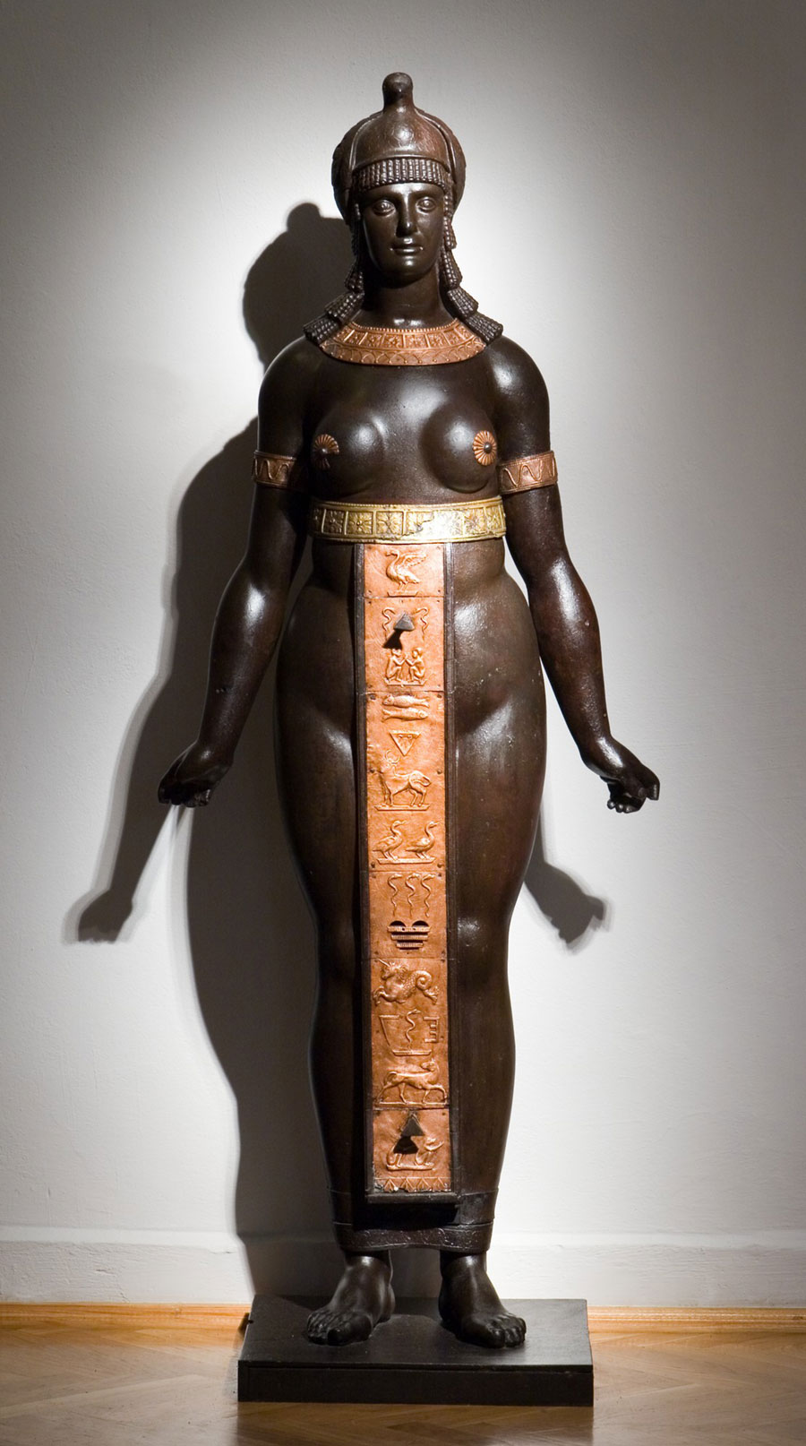 Figuralny piec z ok. 1800 roku z pracowni rzeźbiarskiej Josepha Mattersbergera (1754–1825) jest jednym z najbardziej zaskakujących zabytków w kolekcji Muzeum Narodowego we Wrocławiu. Z jednej strony wynika to z formy dzieła. Ciało kobiety wykonane zostało z żeliwa i mosiądzu, w rzeźbie zaś niegdyś płonął ogień. Z drugiej zaś intryguje egiptyzujący strój. Niebagatelny jest również sposób wyeksponowania rzeźby – ciemne ciało kobiety ustawione zostało na tle jasnej, kontrastującej ściany, w dodatku wieńczy jeden z dłuższych korytarzy muzealnej galerii. Łatwo dać się zwieść pozorom i niespodzianka jest tym większa.