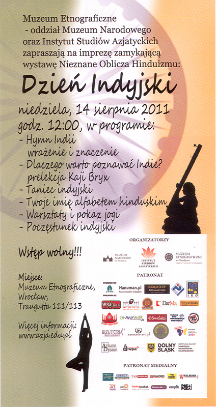 Muzeum Etnograficzne – Oddział Muzeum Narodowego oraz Instytut Studiów Azjatyckich zapraszają na Dzień Indyjski – imprezę zamykającą wystawę Nieznane Oblicza Hinduizmu.