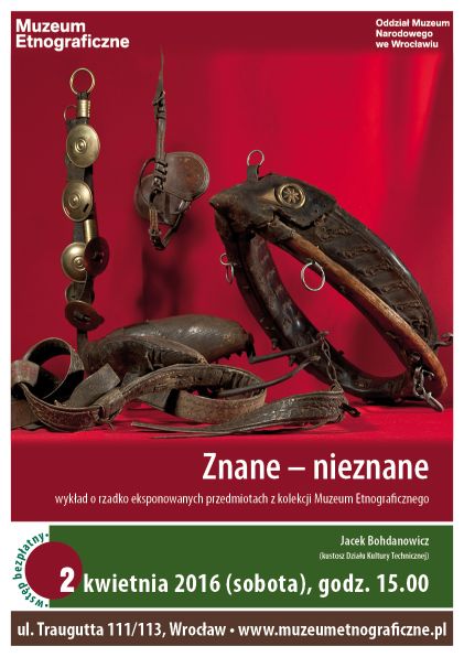 W zbiorach Muzeum Etnograficznego znajdują się liczne zespoły, rzadko eksponowanych przedmiotów z zakresu tradycyjnego rzemiosła ludowego. Prelegent zaprezentuje zarówno te rozpoznawalne przez większość z nas ze względu na swoje przeznaczenie – odkrywając nieznane konteksty ich funkcjonowania, jak też eksponaty nieznane, a niezwykle interesujące i cenne.
