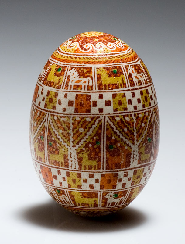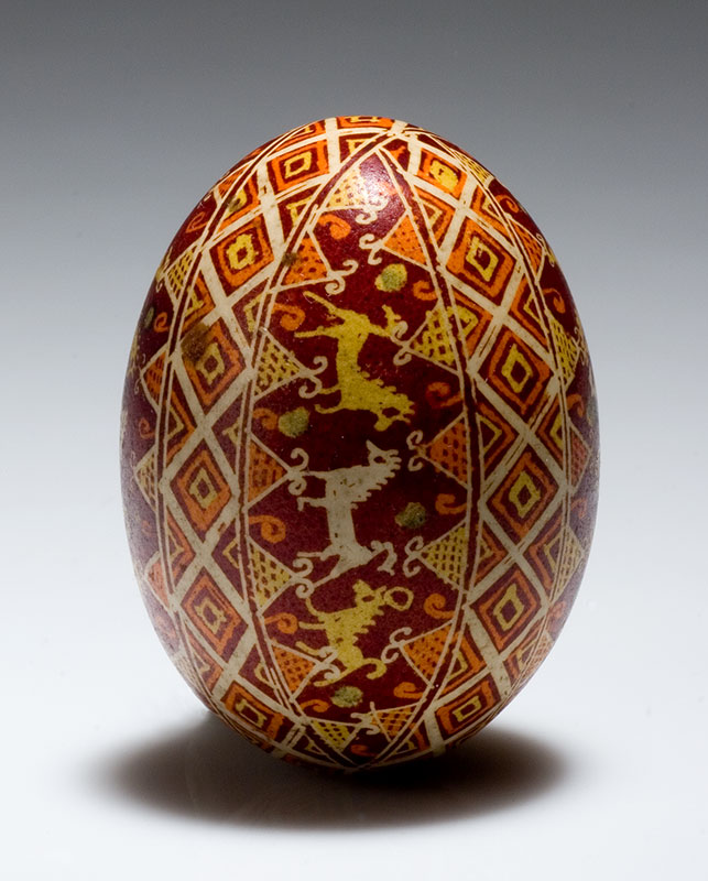 Występuje też – tak rzadko spotykana – zoomorficzna ornamentyka, charakterystyczna dla dawnych pisanek regionu huculskiego. Wizerunki konia, jelenia, ryby należą do grupy dawnych motywów zdobniczych służących magicznym działaniom i zwiększających moc pisanki.