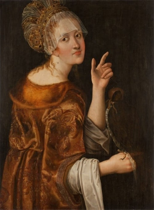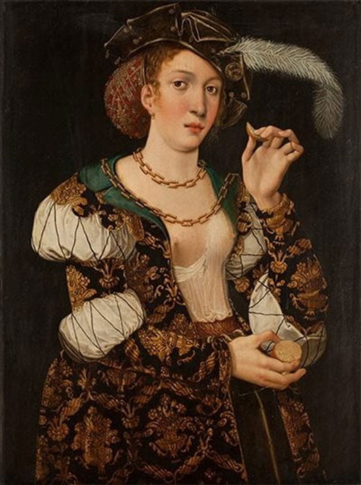 Obraz ten został bowiem przez Dalego tylko „uzupełniony” o pewne motywy (surrealista domalował węża, mrówki na sukni, wyłaniającego się z lustra „ducha” artysty i wreszcie swoją sygnaturę i datę 1974 r. na lewym rękawie sukni), ale mimo wszystko w dalszym ciągu zdradzał cechy dzieła dawnego malarstwa. Był uznawany za pracę malarską Hansa Cranacha (1513–1537), za dzieło ze „szkoły” Cranachów, lub też malowidło atrybuowane było Matthiasowi Gerungowi (ok. 1500–1568/70).