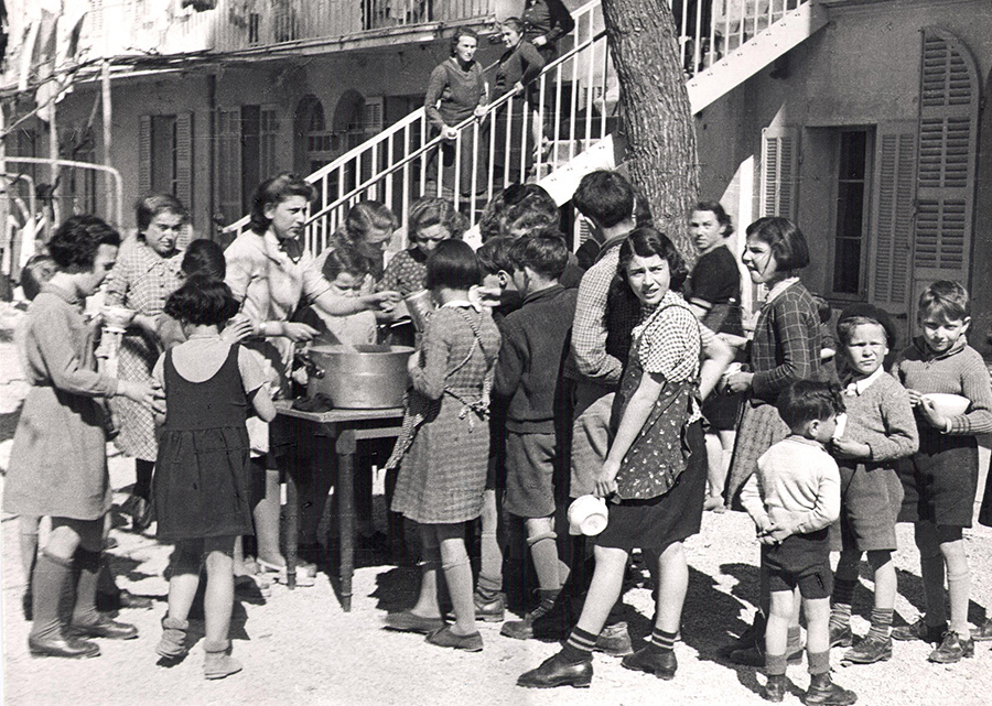 Przykładem czułego spojrzenia Julii Pirotte jest zbiorowy portret dzieci w obozie przejściowym w Bombard. Niedługo po zrobieniu tego zdjęcia, przedstawione na nim osoby wsiadły do pociągu w stronę Auschwitz. Na pierwszy rzut oka jest to sielska scena, na której kilkanaścioro dzieci ustawiło się w kolejce po posiłek. Nie ma w tym przedstawieniu żadnego dramatyzmu, większość postaci ustawiona jest do widza plecami zaglądając ze zniecierpliwieniem do wielkiego garnka z zupą. Starsza dziewczyna po prawej, jedyna odwrócona do nas przodem spogląda w prawo z zaciekawieniem. W lewej ręce trzyma garnuszek na posiłek. W oddali musi dziać się coś intrygującego, bo chłopiec obok również patrzy w tamtym kierunku. Przy pierwszym spotkaniu z tym zdjęciem wydaje się, że przedstawia ono grupę młodzieży na szkolnym podwórku lub w dzielnicy mieszkalnej, która spotkała się na wspólnym obiedzie. Tylko podpis zdradza, co tak naprawdę kryje się za tym obrazem. Pozornie statyczna kompozycja, pod wpływem autorskiego podpisu z drugiej strony zdjęcia: „Żydowskie dzieci na kilka dni przed przewiezieniem do Auschwitz” staje się ulotna, jakby za chwilę kadr miał stać się pusty. Wiemy doskonale, jaka przyszłość czeka większość bohaterów tego ujęcia i wielu innych zdjęć Pirotte, na których widzimy roześmiane lub zawstydzone dzieci z zainteresowaniem śledzących poczynania pani fotograf. Zdjęcia Julii Pirotte wykonane między innymi w obozie dla uchodźców w Bombard są smutnym preludium tego, co zmożemy zobaczyć między innymi na zdjęciach amerykańskiej fotografki Lee Miller z wyzwolenia obozów zagłady.