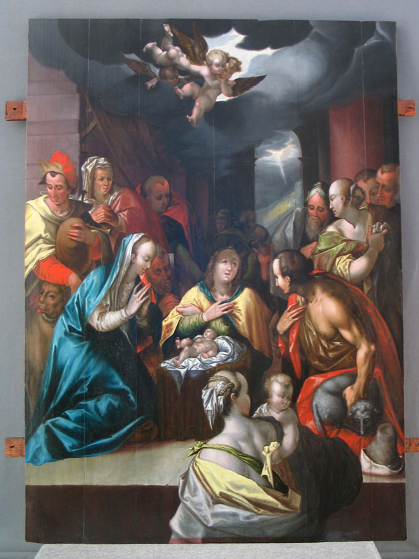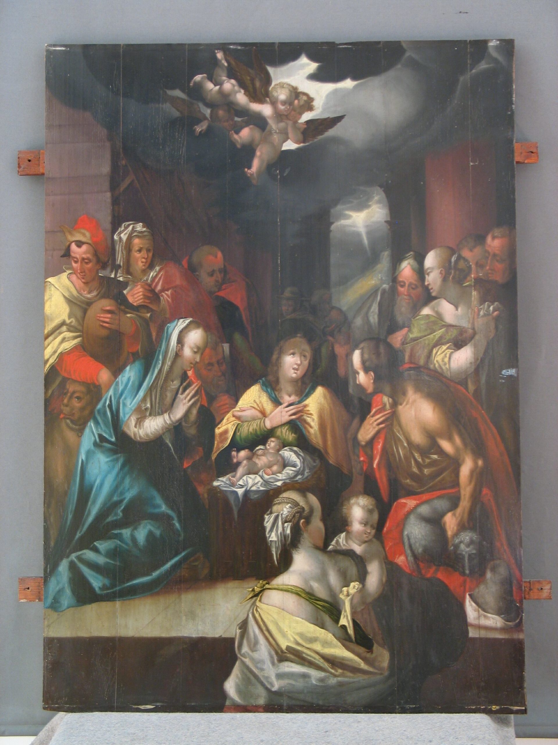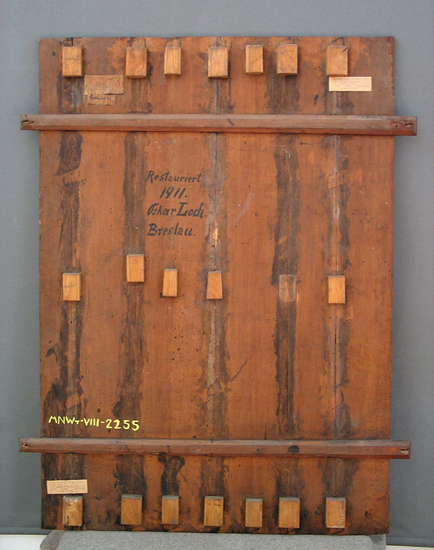 Zabytek, który trafił do pracowni w 2006 r., nosił na sobie ślady wcześniejszych działań konserwatorskich. Zakres muzealnej konserwacji z 1965 r. precyzowała dołączona dokumentacja, zaś sygnatura na odwrocie „Restauriert 1911. Oskar Loch. Breslau.” świadczyła o wcześniejszej kompleksowej interwencji. Istniały też ślady pojedynczych czynności doraźnych.