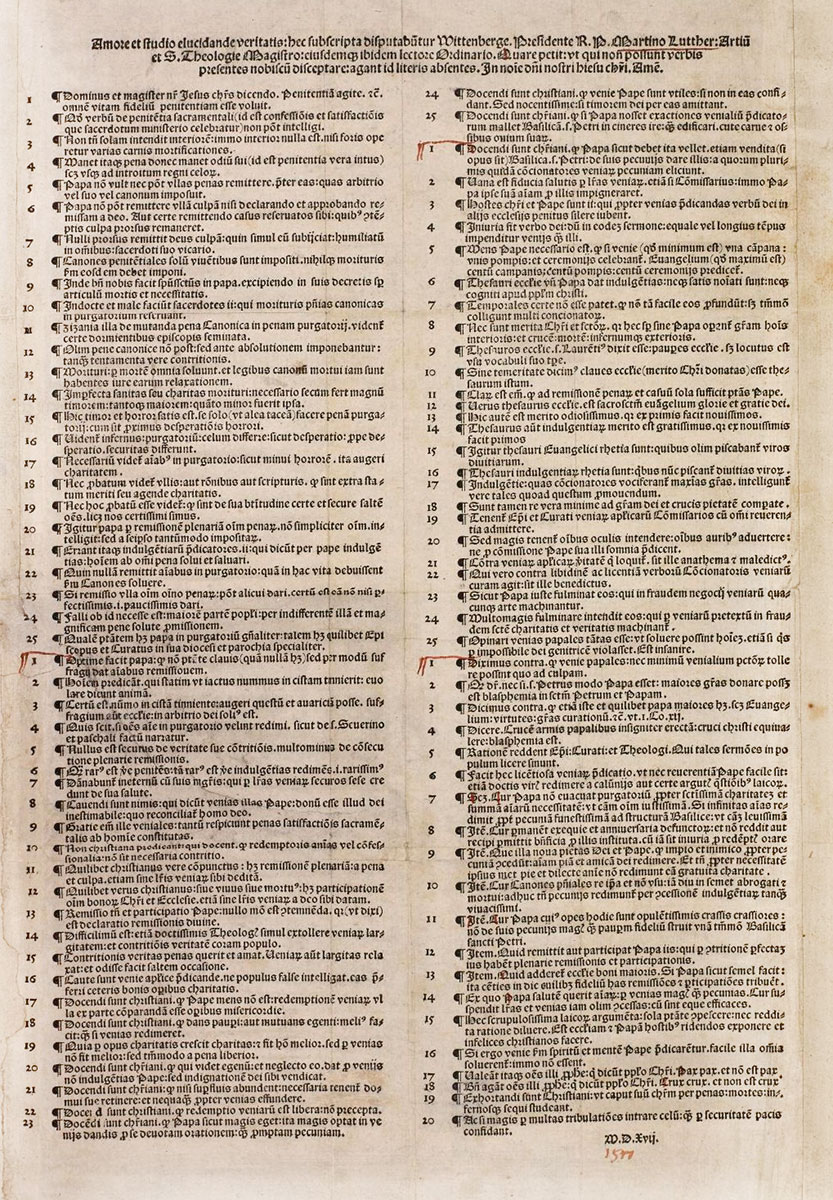 Jest więc swoistym paradoksem, że 500 lat temu postronny obserwator tych wydarzeń wcale nie miał tej pewności. Były one dla ówczesnych tak prozaiczne, że nigdzie nawet nie odnotowano wprost, czy słynne 95 tez faktycznie umieszczono na drzwiach zamkowego kościoła. Dało to asumpt do twierdzeń, że w rzeczywistości była to tylko legenda propagowana już po tym, kiedy tezy zdobyły rozgłos.