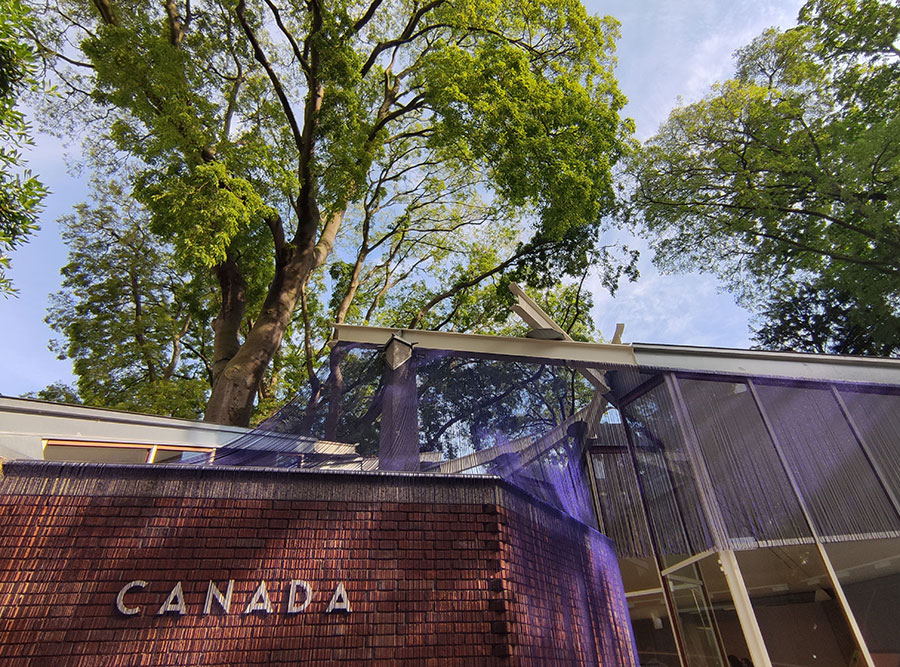 Zachwyca architektura poszczególnych pawilonów, zwłaszcza Krajów Nordyckich czy Kanady. W ich przypadku wnętrza ekspozycji wylały się na zewnątrz, ingerując ale i świetnie uzupełniając architekturę. Lap-See Lam, pochodząca z chińskiej diaspory szwedzka artystka, wypełniła pawilon nordycki bambusową instalacją, której część wychodziła poza budynek. Kontrast między betonową formą a drewnianą konstrukcją jeszcze bardziej podkreślił architekturę obiektu.