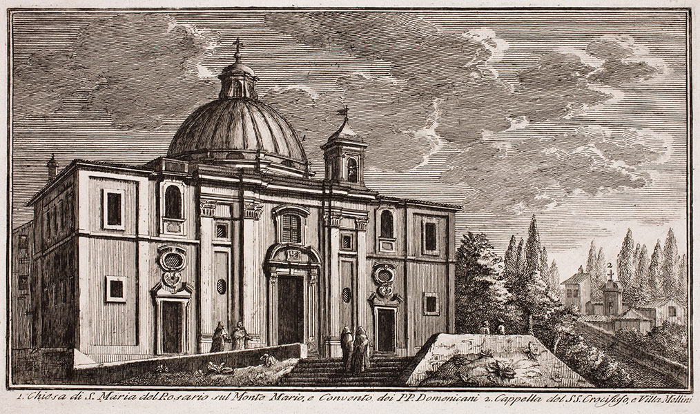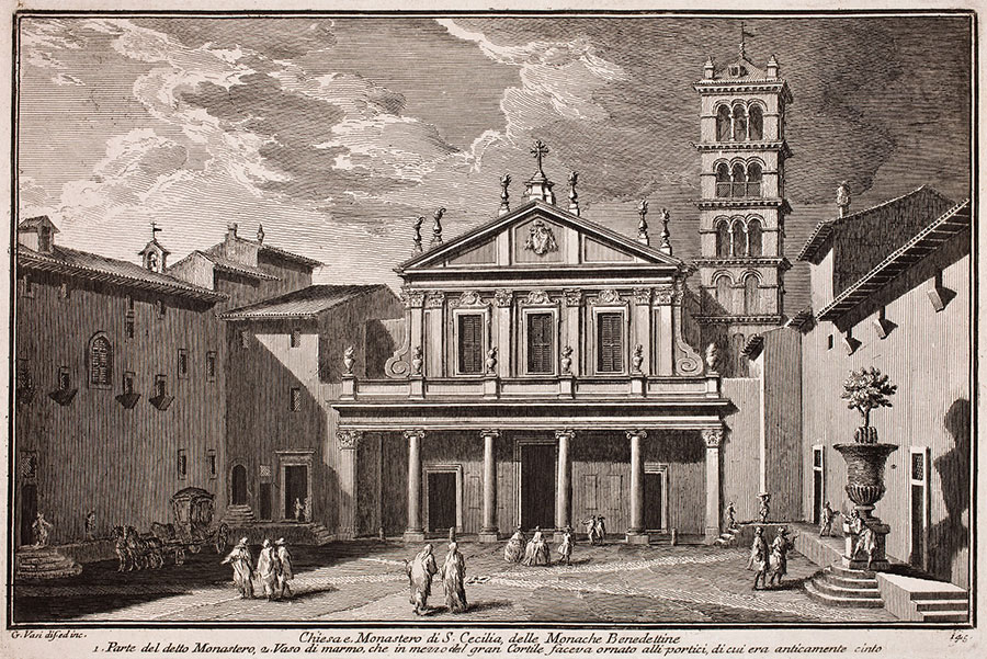 Na przestrzeni stuleci zdanie to było wielokrotnie cytowane i wykorzystywane w różnych sytuacjach, nie dziwi więc, że Vasi uczynił z niego motto przedstawionego widoku, zwłaszcza, że i on był autorem przewodnika po Rzymie. Wpadł on na pomysł napisania takiego przewodnika po sukcesie, jaki odniosło jego monumentalne 10-tomowe dzieło graficzne wydawane w latach 1747–1761 O wspaniałościach Rzymu antycznego i współczesnego (Sulle magnificenze di Roma Antica e Moderna). Publikacja ta stanowiła kompleksowe opracowanie zabytków Rzymu. Poszczególne woluminy poświęcone świątyniom i kościołom, pałacom, willom i ogrodom, placom, mostom, bramom i murom, itd. zawierały setki akwafortowych widoków z zabytkowymi budynkami i budowlami, ze szczegółowymi opisami i planami, na których zaznaczone były obiekty. W zbiorach Muzeum Narodowego we Wrocławiu znajduje się tablica 129. z Księgi VII tego wydawnictwa przedstawiająca kościół Matki Boskiej Różańcowej, a także tablica 145. z Księgi VIII, z widokiem kościoła św. Cecylii.