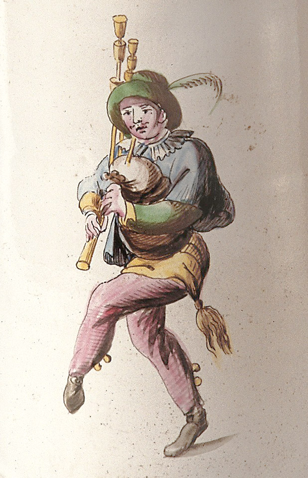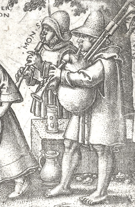 Akompaniuje tej potępienia godnej zabawie kapela, w której jeden z muzykantów dmie w dudy, instrument ówcześnie popularny pośród gminu i na dworach, lecz o negatywnych konotacjach.