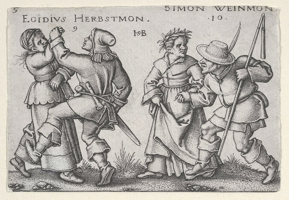Beham (1500–1550), znakomity malarz i grafik, zaliczany do grupy tzw. małych mistrzów, działających w Niemczech w 1. poł. XVI w. kontynuatorów Albrechta Dürera, urodził się w Norymberdze i tu spędził pierwszą część życia. Norymberga była miastem Marcina Lutra. Artysta zatem dobrze znał pisma protestanckich kaznodziejów, których obszerne passusy celowały w festyny, Kirmes. Moc własnego talentu włączył w walkę z człowieczymi przywarami, tworząc przy tym zupełnie nowy sposób ilustrowania chłopskich świąt, tak trafny, że w sztuce europejskiej utrwalił się jako topos ludycznej fiesty.