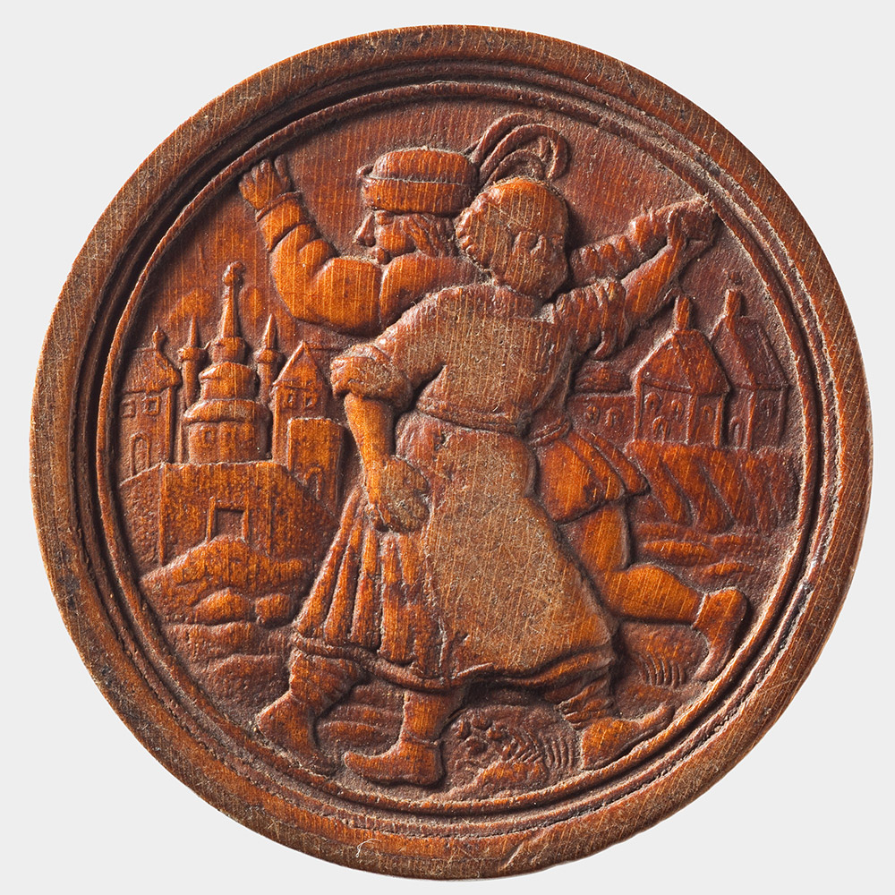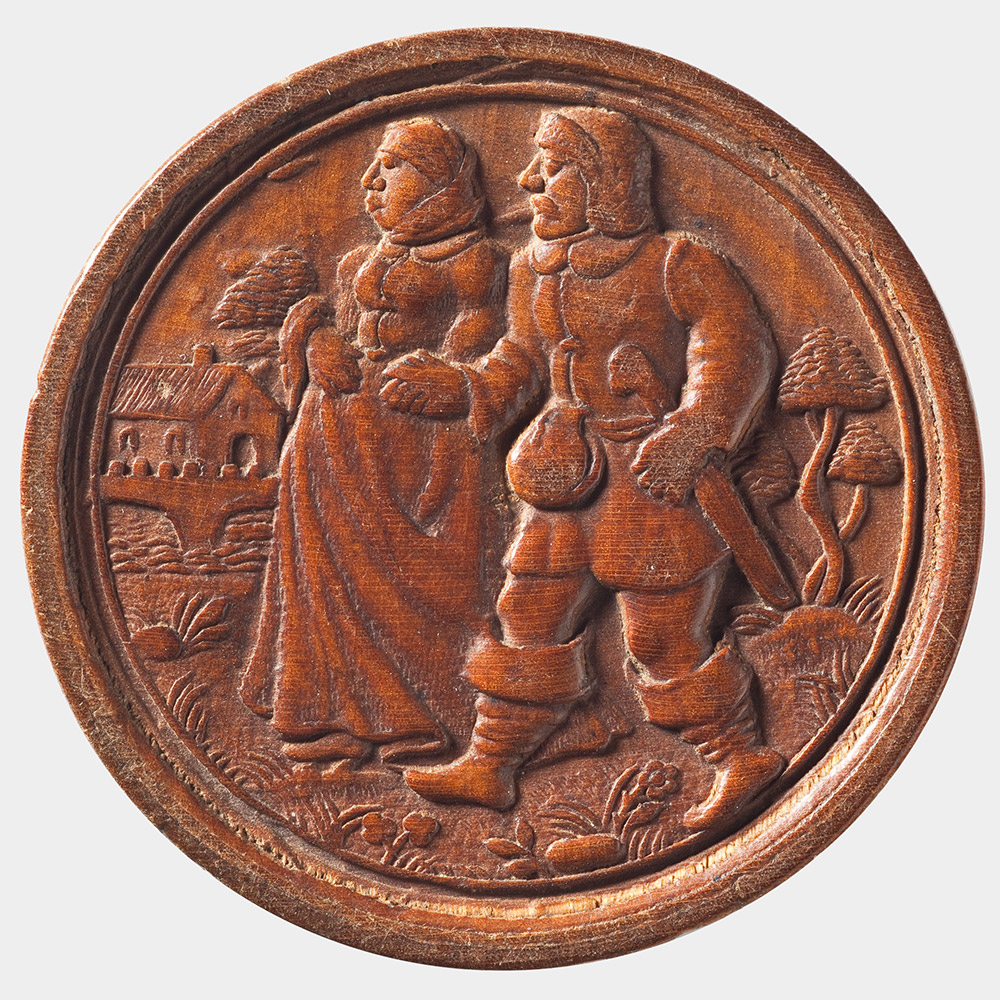 Pierwsze ceramiczne naczynia zdobione wyobrażeniami tańczących wieśniaków pojawiły się w Nadrenii wkrótce po publikacjach graficznych cykli Behama – najstarszy znany dzban pochodzi z Siegburga i jest datowany na 1575 r. Motyw upowszechnił się w latach 80. i 90. XVI w. w Raeren, tam bowiem nieco wcześniej, około połowy stulecia, zaczęto wyrabiać nowe typy dzbanów – z cylindrycznym brzuścem i z wydłużoną szyją. Dwie dość duże gładkie powierzchnie były znakomitymi „podobraziami” dla skomplikowanych dekoratorskich inwencji.
