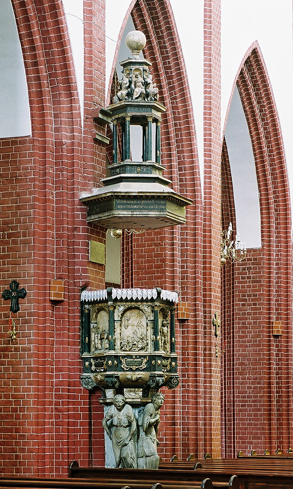 Dopiero w 1583 pastor Lucas Polio ogłosił podczas uroczystego nabożeństwa, że dzieło zostało ukończone – wówczas to umieszczono w drzwiczkach ambony wspaniałą kratę z pozłacanego brązu.