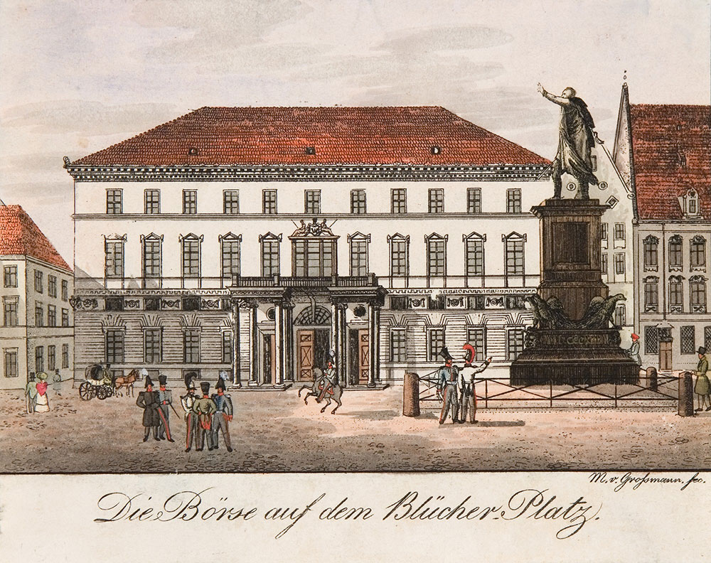 na grafice Maximiliana von Grossmanna Die Börse auf dem Blücher-Platz, ok. 1830