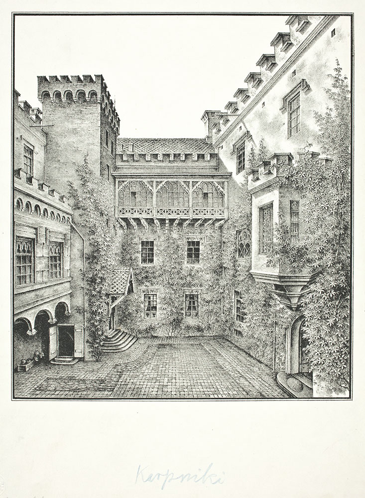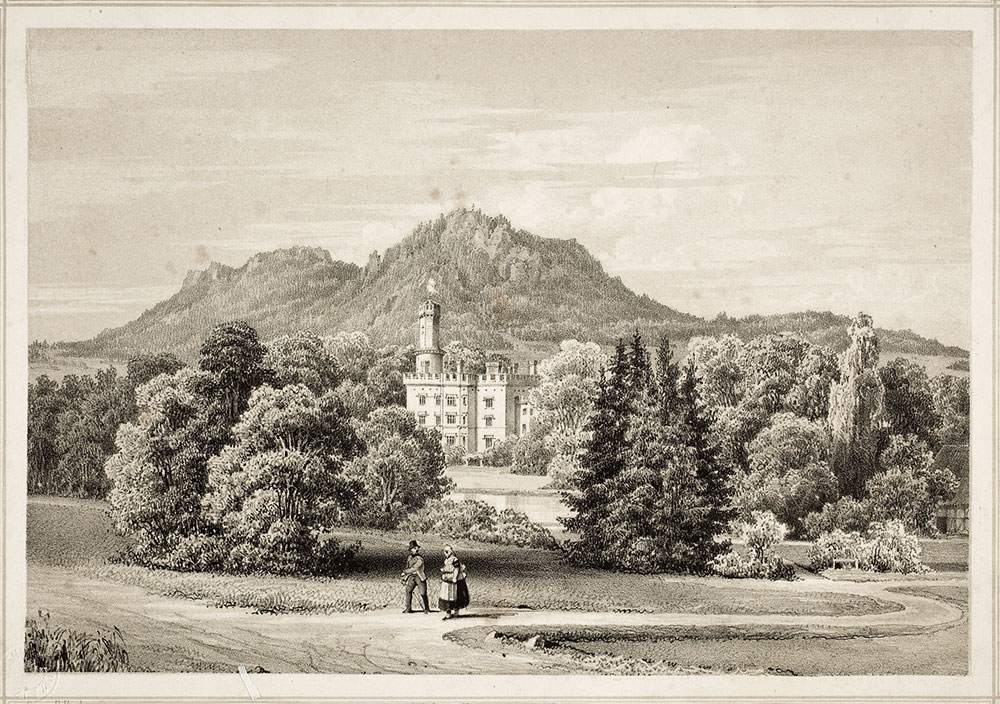 na grafice Wilhelma Loeilloita wg Louisa Ferdinanda Koski, Widok pałacu i parku w Karpnikach, 1848–1862