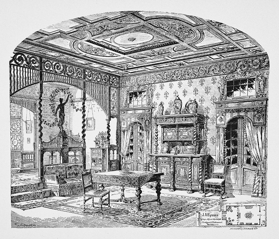 „Średniowieczny”, „renesansowy”, „barokowy” budynek wymagał wyposażenia stylowo paralelnymi sprzętami. Najlepiej oryginalnymi, których jednak nie zachowało się w dostateczności by zaspokoić potrzeby. Pojawiły się zatem imitacje. Wytwórcy rzemiosła wspomagali się kompendiami historycznych form i ornamentów. Niekiedy były to katalogi znanych kolekcji renesansowych i barokowych artefaktów. Produkty – „nowe antyki” – chętnie zaakceptowali klienci, w dużej mierze młodzi burgeois, zwykle gorzej wyedukowani i mniej wrażliwi na subtelności estetyczne od posiadaczy „starych nazwisk”.
