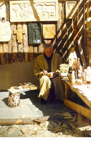 Józef Wiejacki urodził się w 1922 r. w Mesznej Opackiej – miejscowości położonej na Pogórzu Karpackim, w pobliżu znanego daleko poza Galicją sanktuarium w Tuchowie. Pamięć o tak wyjątkowym miejscu urodzenia wywarła równie silny wpływ na wybór życiowej drogi przyszłego rzeźbiarza jak stolarsko – rzeźbiarskie tradycje rodzinne. Przez całe życie potrzeba kształtowania drewna była mu równie bliska jak konieczność odkrywania prawd wiary, dialogu z Bogiem. Młodzieńcze próby rzeźbiarskie przerwała wojna. W tych tragicznych latach Józef Wiejacki podjął walkę w szeregach Batalionów Chłopskich. Po wojnie opuścił rodzinną Małopolskę i zamieszkał na ziemiach zachodnich, od 1947 roku w Małkowicach koło Kątów Wrocławskich. Do rzeźby powrócił w latach sześćdziesiątych i już wtedy pracę twórczą połączył z działaniem na rzecz lokalnego środowiska. Swoje rzeźby zawsze eksponował na wystawach o zasięgu ogólnopolskim, przekazywał je do zbiorów muzeów, prywatnych kolekcjonerów, ale z drugiej strony także do miejscowej parafii i szkół. Od lat prowadzi warsztaty z młodzieżą szkolną Małkowic, w razie potrzeby konserwuje rzeźby stanowiące wyposażenie miejscowego kościoła. Bierze udział w konkursach organizowanych przez muzea i w gminnych dożynkach. Jest w swej pracy, we wszystkich działaniach jednocześnie lokalny i uniwersalny.