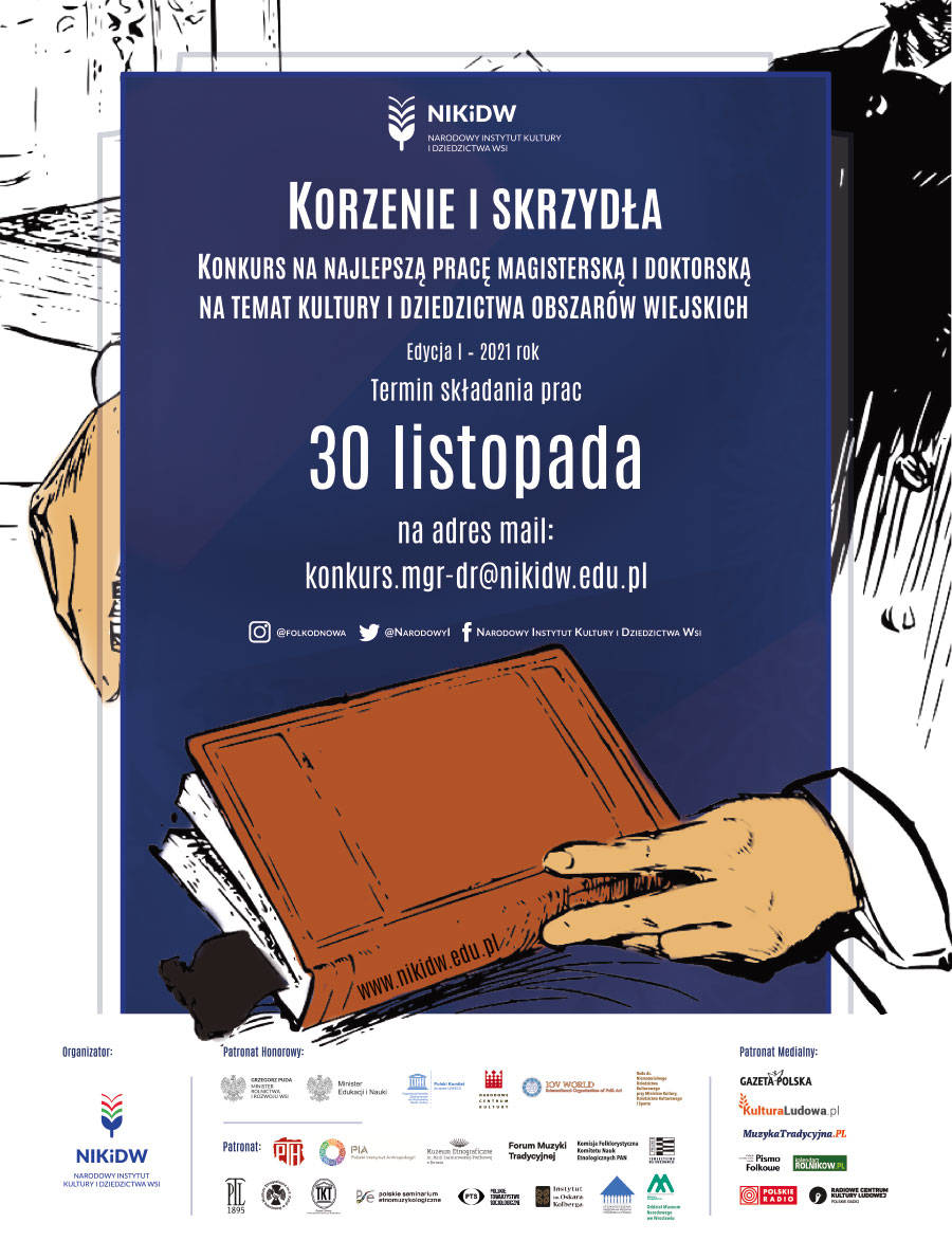 Narodowy Instytut Kultury i Dziedzictwa Wsi zaprasza do wzięcia udziału w konkursie na najlepszą pracę magisterską i doktorską na temat kultury i dziedzictwa obszarów wiejskich w Polsce.