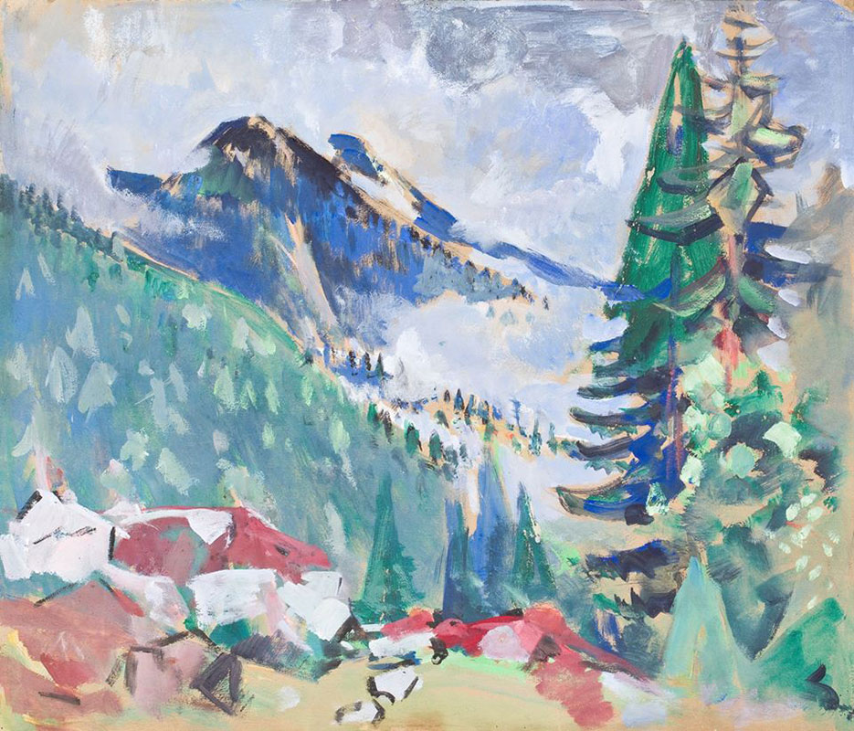 Prezentowany tu Krajobraz górski powstał w Międzygórzu, gdzie artysta w swoim domku letniskowym spędzał wakacje.