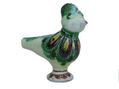 w kształcie ptaszka, znaleziony podczas wykopalisk w Peru. Równie cenne są porcelanowy japoński gołąb i okaryna z miśnieńskiej porcelany.