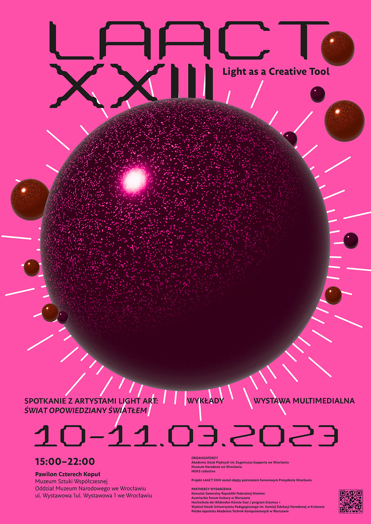 Projekt LAACT XXIII został zainspirowany wystawą „Otto Piene. Gwiazdy”, prezentowaną do końca czerwca 2023 r. na dziedzińcu Pawilonu. Otto Piene jest jednym z najważniejszych twórców light art i prekursorem myślenia o świetle jako o medium sztuki współczesnej. LAACT XXIII pokazuje, w jaki sposób żyjący dziś artyści opowiadają o świecie i współczesnych wydarzeniach poprzez światło. Wystawa będzie dostępna dla zwiedzających 10 i 11 marca w godz. 15:00–22:00.