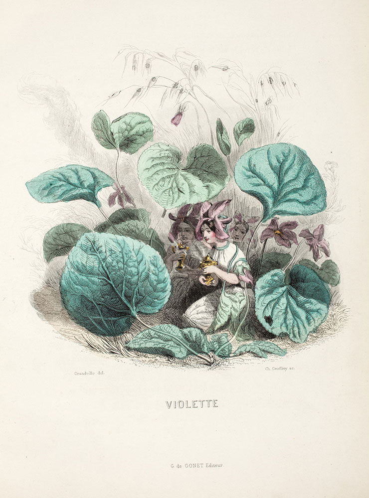 Piękno flory wiernie oddane przez życzliwego i uważnego obserwatora Grandville’a, wzruszające historie kobiet-kwiatów i praktyczny poradnik ogrodnictwa, uzupełnione są nutami – piosenką liryczną Le Myosotis (Niezapominajka) napisaną przez Augusta Morela (1809–1881), francuskiego kompozytora i krytyka muzycznego.