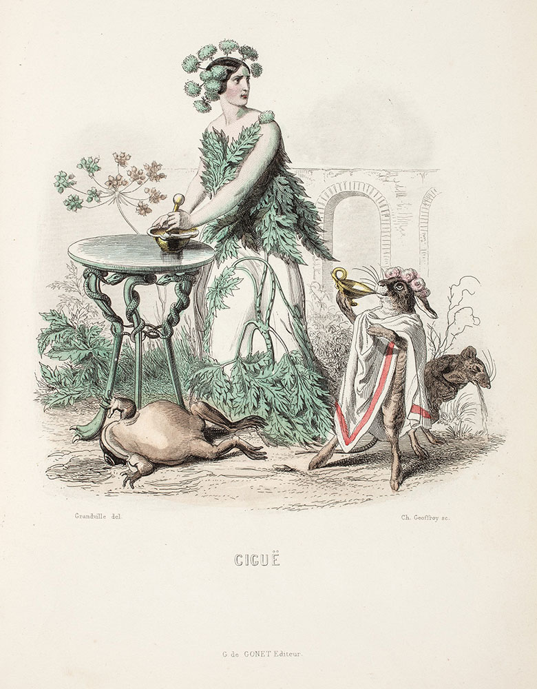 Niszczycielską siłę roślinnych składników ilustruje plansza ze szczwołem plamistym, w starożytności określanym jako cykuta. Zdeterminowana w działaniu kobieta – szczwół, w skupieniu, obserwując, czy nikt nie nadchodzi, rozciera w moździerzu śmiercionośną roślinę, jedna ofiara już skonała u jej stóp, druga wypija truciznę, trzecia zaczyna boleśnie odczuwać jej skutki. Grozę sceny podkreślają oplecione wokół nóg stołu, na którym przygotowywana jest trutka, węże – symbol zła. Szata jednego z gryzoni przypomina o Sokratesie otrutym cykutą. Opisał to zdarzenie Platon w Fedonie i Ksenofont w Obronie Sokratesa.