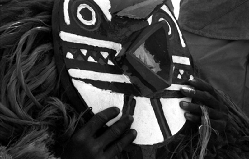 Ludzie wierzą, że pod postacią masek przychodzą do nich opiekuńcze, przyjazne bóstwa z buszu, które pomagają im żyć na co dzień – antylopy, guźce, motyle. Tancerze rytualni nakładają pięknie malowane wielkie drewniane maski – zoomorficzne i prezentujące symbole sił przyrody, jak słońce czy wiatr oraz kostiumy z rafii upodabniające ich do zwierząt. Odsłonić mogą tylko dłonie i stopy i nikt z wioski nie może wiedzieć, kto jest ukryty pod kostiumem.