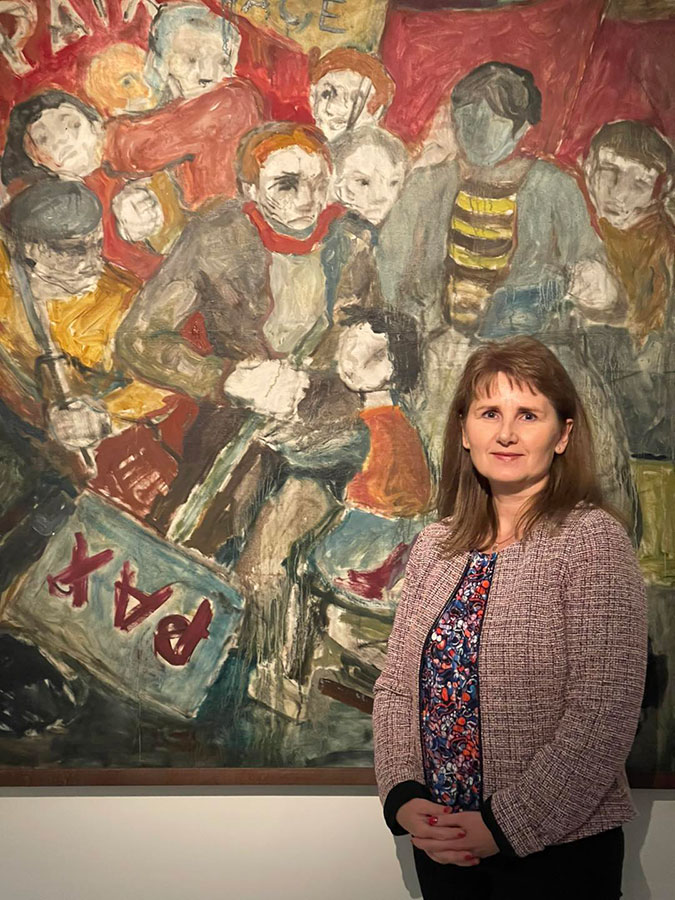 Wystawa bardzo jej się podobała, a największe wrażenie zrobił na niej szkic do obrazu Paix, Pace, Pax. Obraz przedstawia scenę manifestacji pokojowej i jest szczególnie wymowny w dzisiejszych niepewnych czasach.