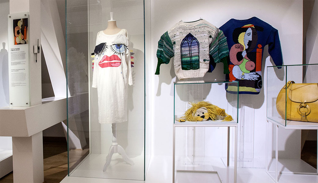 Na wprost gablot z torebkami, w części zatytułowanej „Twórczy recycling drogą do wolności”, obejrzeć można ubrania z lat 80. XX w. – dwa legnickie swetry z tzw. wełny kowarskiej, z motywem gotyckiego okna jeden, a drugi z „pikasami”. W kryzysowych latach pustych półek Polacy zadziwiali pomysłowością – dolnośląską specjalnością stały się wtedy m.in. wyroby z odpadowej wełny z fabryki dywanów w Kowarach. Widoczny w gablotce szal w kształcie lwa surrealnie przypomina absurdy tamtego życia.