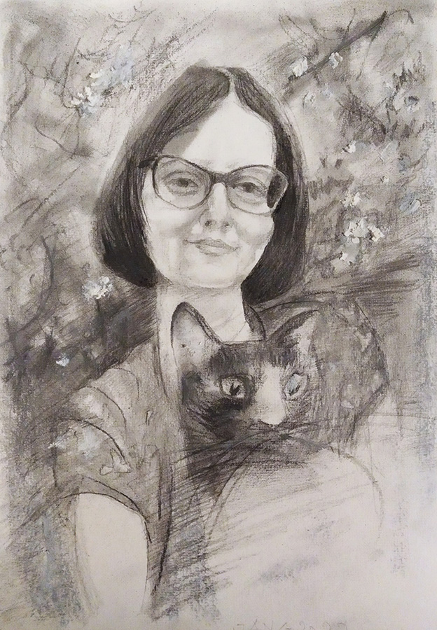 Zwraca też uwagę portret kobiety z kotem. Nie dość, że modelka obdarowała nas uroczym uśmiechem, to w dodatku patrzy na widza w towarzystwie zwierzęcia, zapewne własnego. I proszę nie myśleć, że ów kot jest ledwie naszkicowany. Wręcz przeciwnie, nie tylko doprowadzono go do perfekcji, ale w dodatku umieszczono na pierwszym planie. Moim zdaniem, gdyby miało kiedyś dojść do pojawienia się pracy na rynku antykwarycznym – należałoby zapłacić podwójnie. Ewidentnie są to przecież dwa portrety w jednym.
