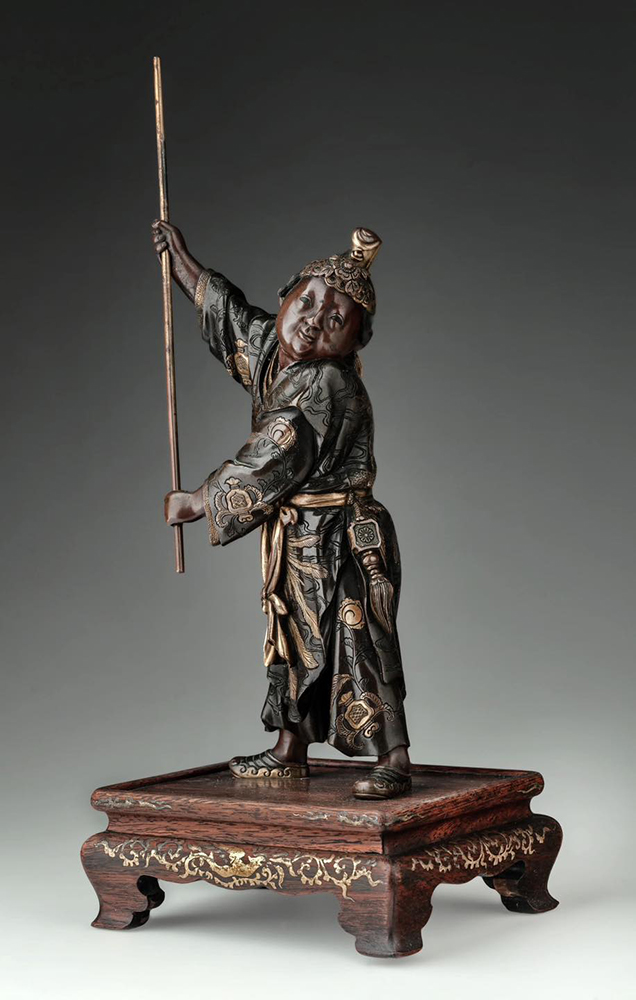 Okimono, które powiększyło kolekcję Muzeum Narodowego we Wrocławiu w 2024 r., wykonano z patynowanego brązu. Przedstawia chłopca stojącego w kontrapoście, który w uniesionych rękach trzyma drzewce latarni (nie zachowanej). Ubrany jest w kimono przewiązane pasem obi z przymocowanym inrō – puzderkiem na medykamenty. Strój zdobią misternie grawerowane i złocone przedstawienia feniksów.