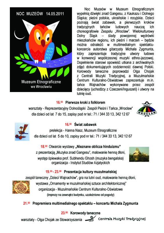 otwarcie wystawy z prezentacją „Muzyka znad Gangesu”, występ śpiewaka prof. Subhendu Ghosh (muzyka bengalska), malowanie henną dłoni,
