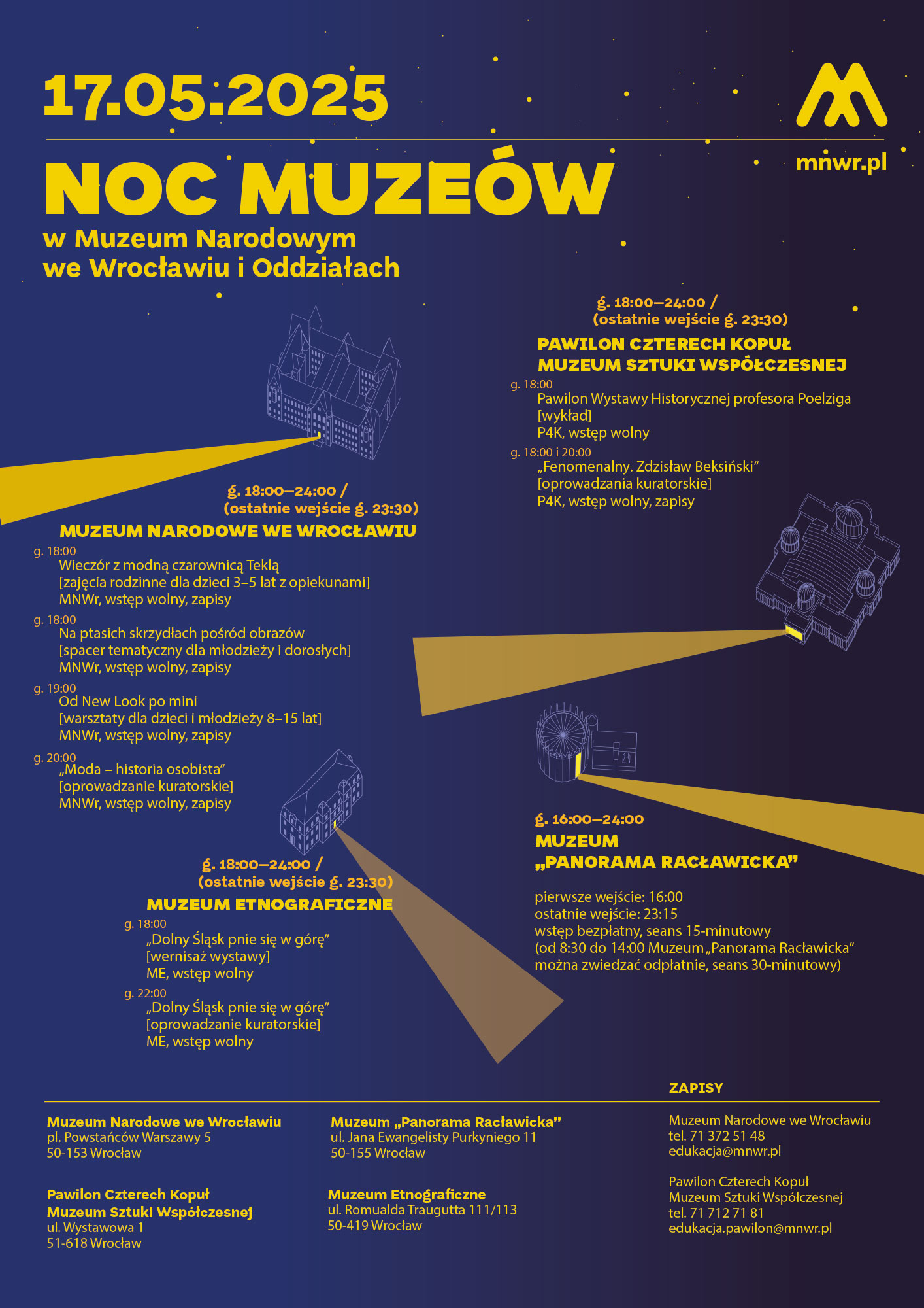 pl. Powstańców Warszawy 5, tel. 71 372 51 48 lub edukacja@mnwr.pl
