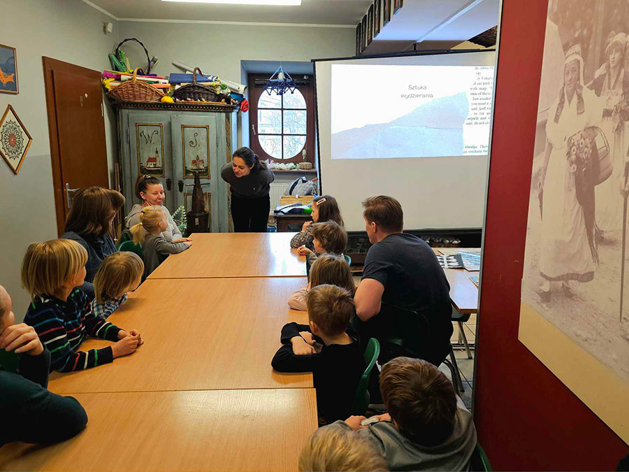 Kaja Ossowska poprowadziła już swoje pierwsze warsztaty z cyklu „Etno w południe” – tematem była wydzieranka, tradycyjna technika artystyczna. Uczestnicy spotkania mogli dać się ponieść kreatywności i stworzyć własną wydzierankę lub odtworzyć jedną z prac ze zbiorów ME. Rezultaty wyszły wspaniałe!