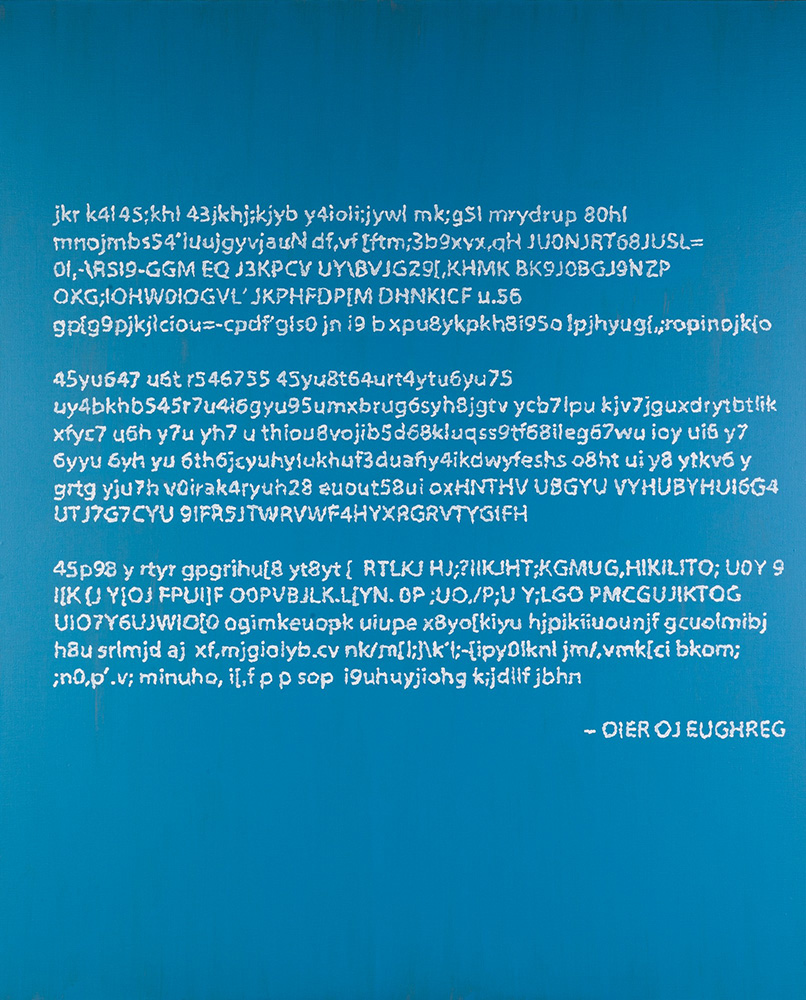 Namalowane w lipcu 2023 roku obrazy o zabawnych tytułach dbndbsdjjhb fjbd oraz jkr k4l45;khl 43jkhj;kjyb pochodzą z nowego cyklu zapoczątkowanego przez artystę w 2022 roku.