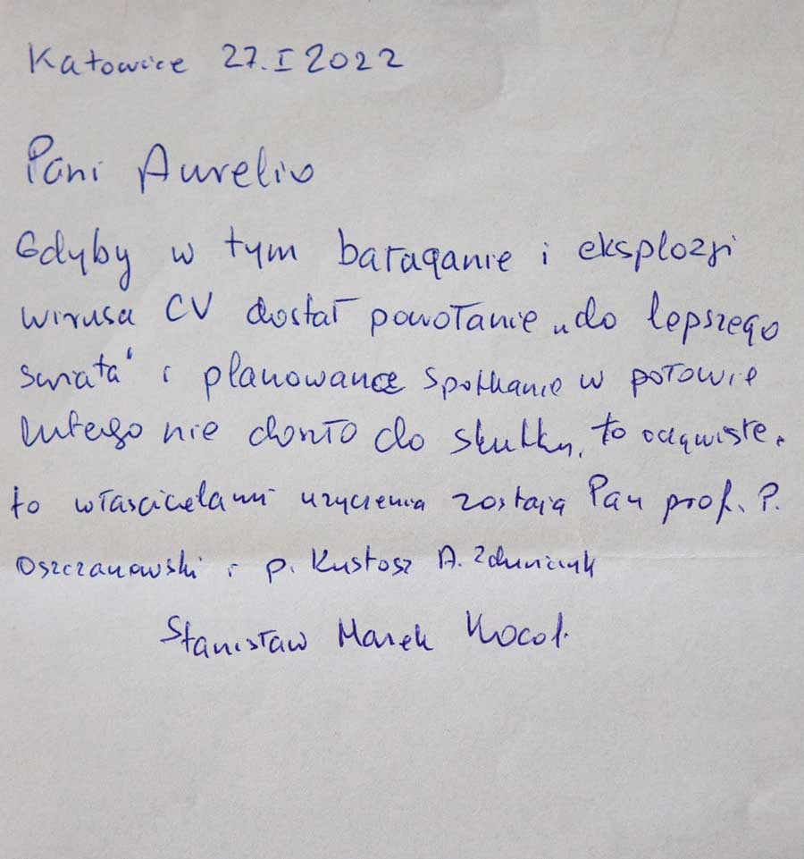 „Zapewne najbardziej wzruszający oprócz samej darowizny p. Stanisława Marka Kocota pozostanie list, który dotarł do nas w styczniu tego roku” – powiedział Piotr Oszczanowski, dyrektor MNWr.
