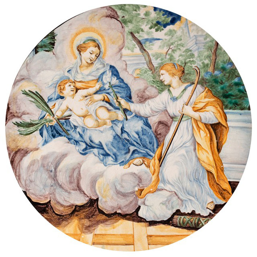 Majolikowa misa z przedstawieniem Madonny z Dzieciątkiem i świętej jest jednym z bardziej wartościowych zabytków w kolekcji ceramiki wrocławskiego Muzeum Narodowego. Ten okazały talerz (wł. piatto, piatto da pompa) ze sceną adoracji Marii z Dzieciątkiem przez św. Martynę wykonany został w Castelli, w ośrodku ceramicznym w XVII w. znanym już w całych Włoszech, w warsztacie rodziny Grue.