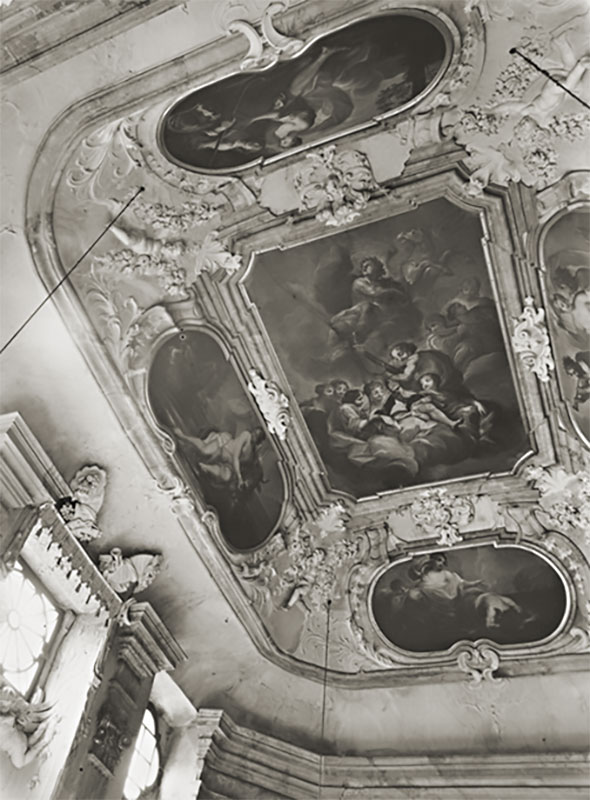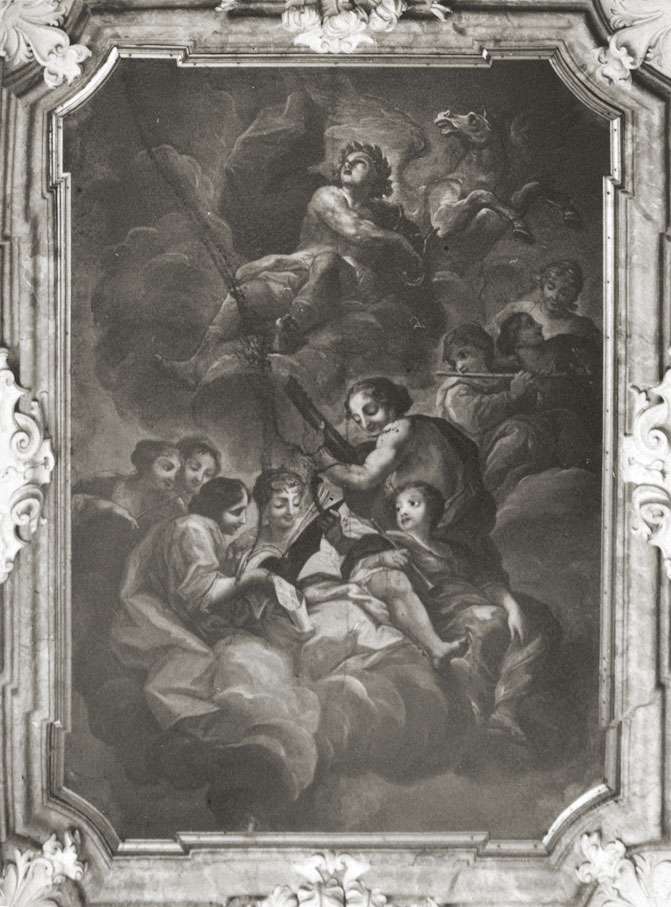 Pomimo ogromnych zniszczeń, wciąż dowodzi ono z jakim rozmachem dekorowane były – dziś w większości zrujnowane – śląskie siedziby szlacheckie. Przedstawiony na obrazie Apollo ukazany jest jako przewodnik grających na instrumentach muz, prezentuje niezwykle rzadką na Śląsku mitologiczną tematykę dekoracji stropów, którą wymienić możemy zaraz obok polichromii Antona Felixa Schefflera z Sali Maksymiliana na Zamku Książ.