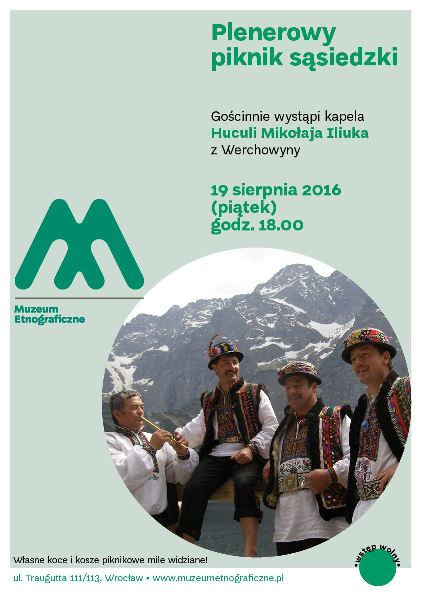 W piątek 19 sierpnia o godz. 18.00 będzie miał miejsce plenerowy piknik sąsiedzki z gościnnym udziałem kapeli Huculi Mikołaja Iliuka.