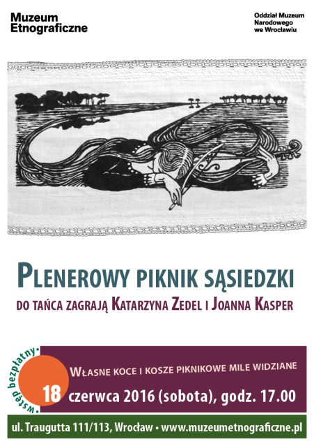 Na czerwcowym pikniku i potańcówce przy budynku Muzeum Etnograficznego zagrają uczennice wiejskich muzykantów z radomszczyzny oraz ich przyjaciele. Spotkanie będzie miało formę otwartego dla wszystkich sąsiedzkiego pikniku z wykonywaną na żywo polską muzyką tradycyjną. Planujemy też zabawy dla najmłodszych. Zapraszamy wszystkich bliższych i dalszych sąsiadów na spotkanie na trawie. Własne kocyki i kosze piknikowe mile widziane!