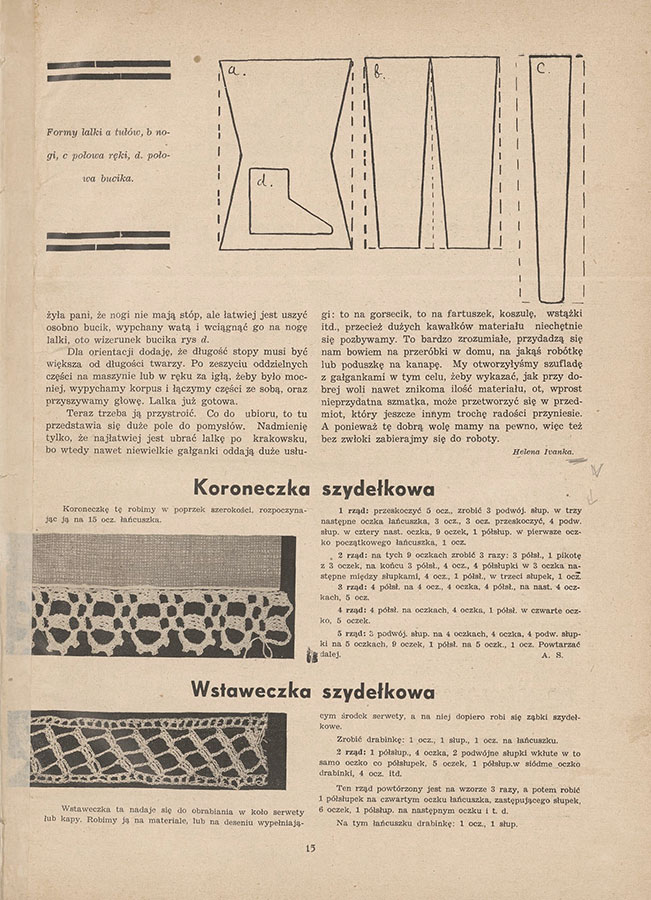 Ja inspiracji szukam w tradycji i w archiwach. Niezwykłym źródłem inspiracji jest archiwum Polona.pl ➸ darmowe źródło legalnej kultury. Można tu znaleźć zarówno całe książki, jaki i grafiki, pocztówki, nuty, stare numery czasopism – w tym poświęconym robótkom! Moim ulubionym źródłem inspiracji jest magazyn „Ja To Zrobię. Pismo Poświęcone Robotom Ręcznym”. Jest to gazeta wydawana w dwudziestoleciu międzywojennym przez Towarzystwo Wydawnicze „Bluszcz”.