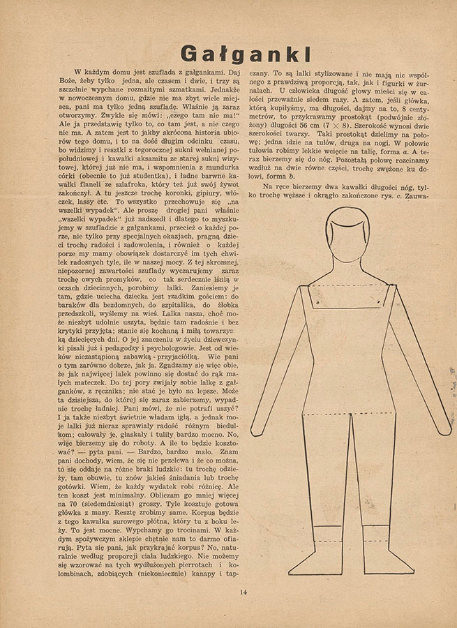 Autorka pisze: „W każdym domu jest szuflada z gałgankami (…) Zwykle się mówi ‘czego tam nie ma!’. Ale ja przedstawię wam tylko to, co tam jest, a nie czego nie ma. A zatem jest to jakby skrócona wersja ubiorów tego domu, i to na dość długim odcinku czasu, bo widzimy i resztki z tegorocznej sukni wełnianej popołudniowej, i kawałki aksamitu ze starej sukni wizytowej, której już nie ma, i wspomnienia z mundurka córki (obecnie to już studentka), i ładne barwne kawałki ze szlafroka, który już swój żywot zakończył”.