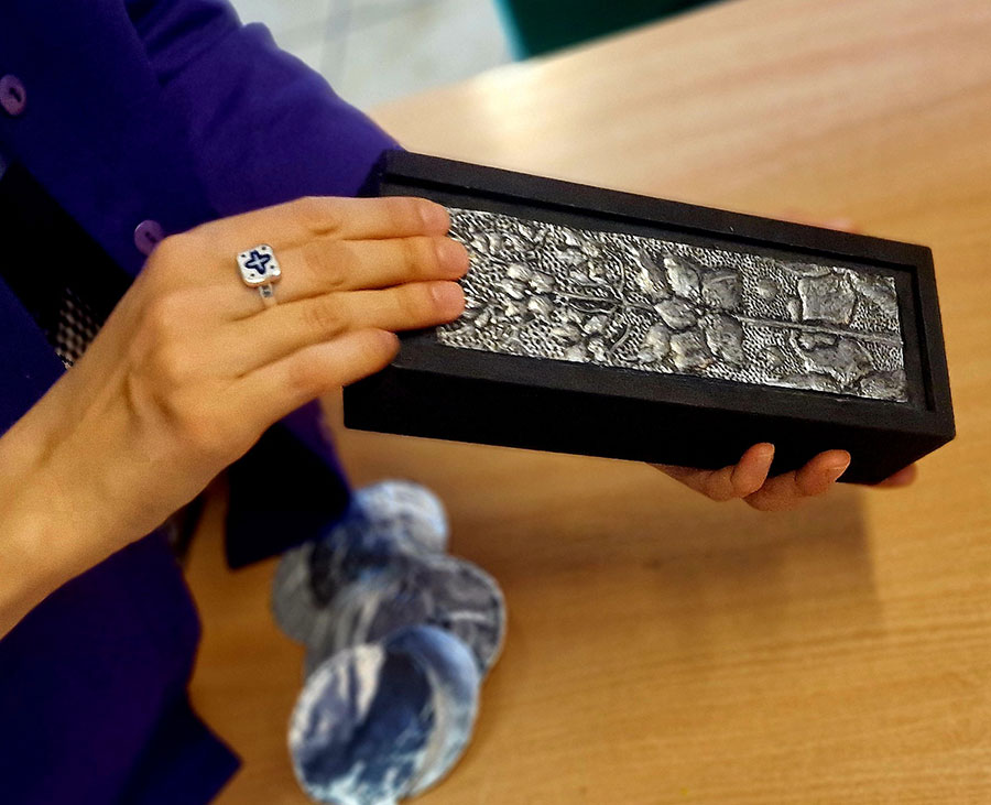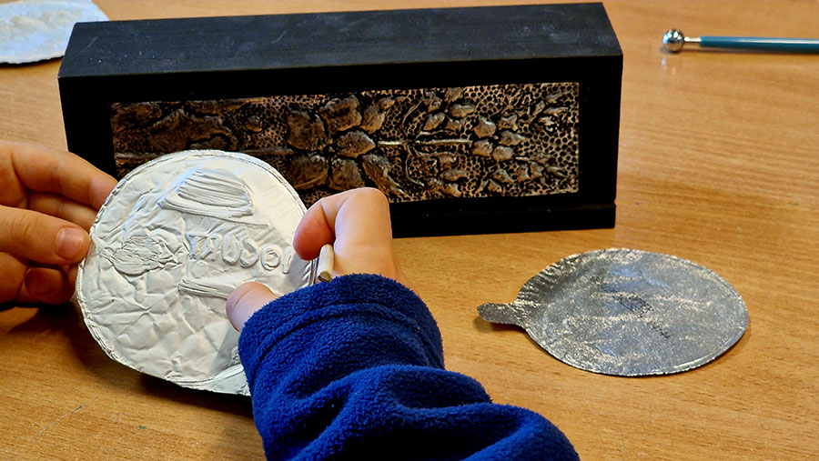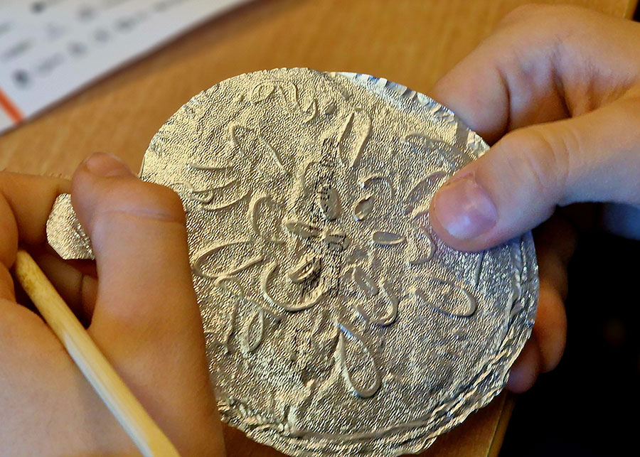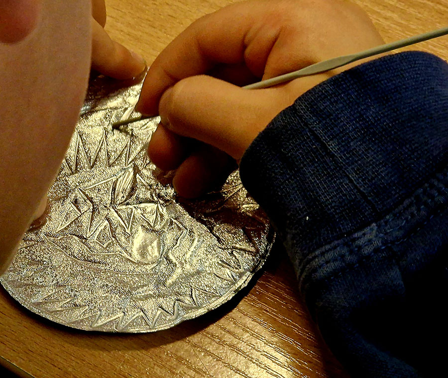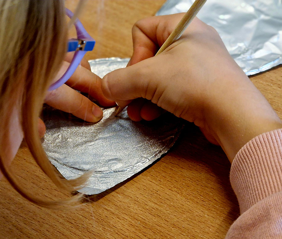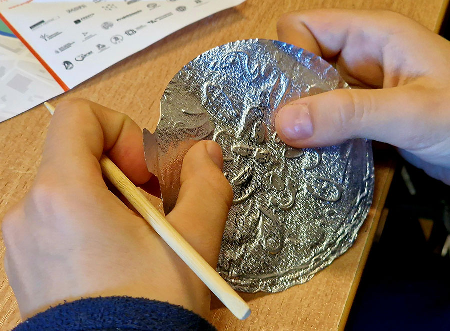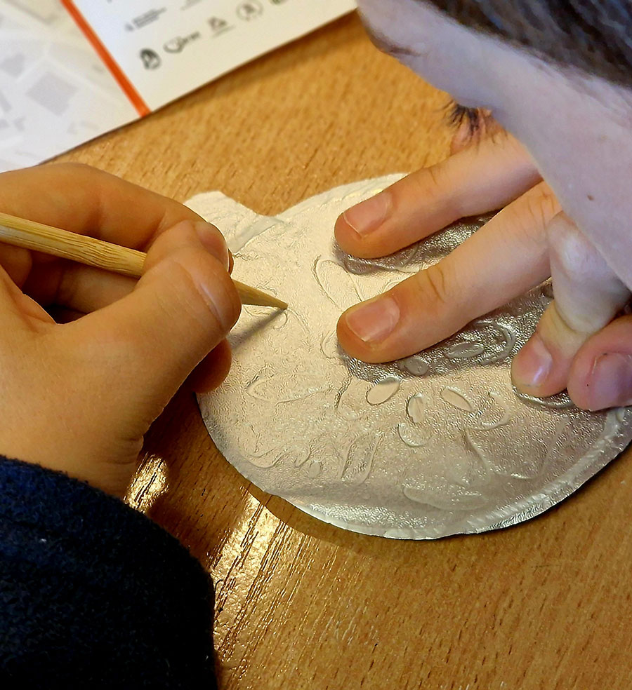 W trakcie warsztatów w Muzeum Etnograficznym dzieci przyglądały się różnym przedmiotom zdobionym reliefami, by potem stworzyć na wzór tych najpiękniejszych przykładów swoją małą płaskorzeźbę. Efekty wyszły znakomite!