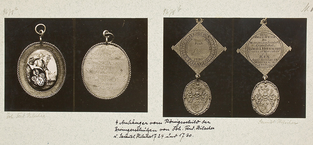 Wśród wielu kwerend dotyczących klejnotów brackich wyróżnia się ta związana z zawieszkami królów strzeleckich z rodziny Hielscher. Gdy w 1937 r. muzeum odwiedził Hermann Hielscher, odkrył na królewskim orle dwie zawieszki należące do jego przodka, kupca Samuela Hielschera, i zapragnął wejść w posiadanie ich kopii. Po przedstawieniu kosztów wykonania kontakt się urwał. Nie na długo, bowiem dwa lata później wraz z bratem postanowili wręczyć kopię jednej z zawieszek (z 1730 r.) seniorowi rodziny, Ferdynandowi, na 80. urodziny. W piśmie wysłanym 1 maja 1939 r. poprosili o szybkie wykonanie zlecenia, ponieważ urodziny wypadały… 18 maja. Zapał braci ostudził wrocławski złotnik, który ocenił, że z uwagi na stopień skomplikowania prac potrzebuje na to przynajmniej dwóch miesięcy, a dołączona wycena ostatecznie zamknęła sprawę spóźnionego prezentu.