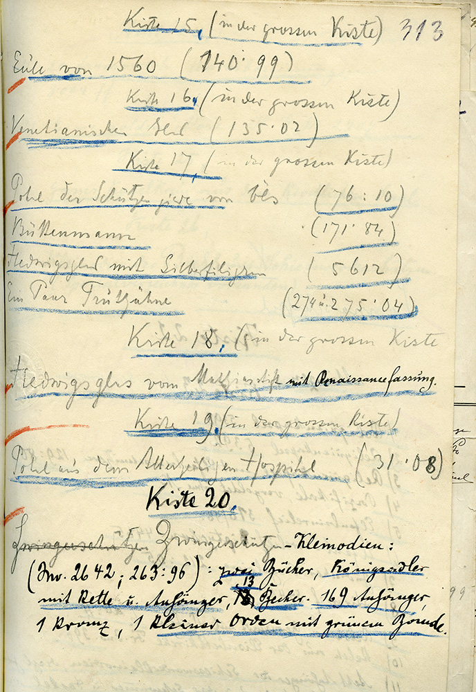 Badanie dziejów precjozów wrocławskich bractw strzeleckich to nie tylko obcowanie z pięknymi eksponatami, ale również analiza archiwaliów ich dotyczących. Wbrew pozorom nie musi to być nudne i niewdzięczne zajęcie. Wprost przeciwnie, przechowywane w Gabinecie Dokumentów archiwalia dawnych muzeów przynoszą bowiem wiele zaskakujących informacji dotyczących dziejów klejnotów strzeleckich w przedwojennych zbiorach muzealnych w latach 1899–1943.